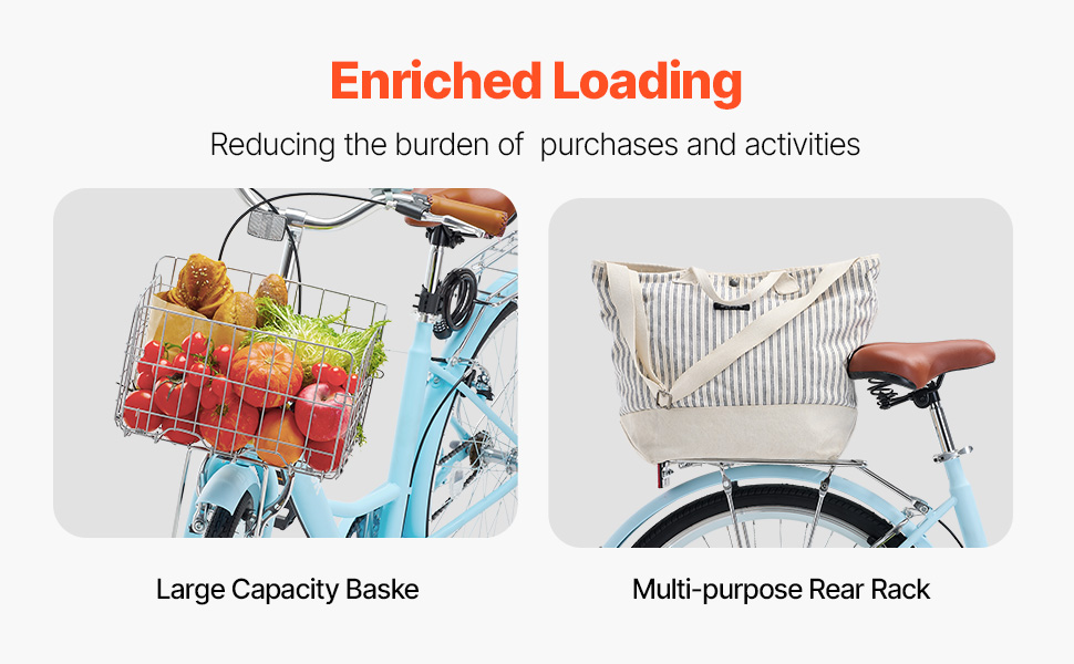 Tento bicykel cruiser je vybavený priestranným predným košíkom a robustným zadným nosičom, vďaka čomu je ideálny na prevážanie potravín, tašiek alebo iných nevyhnutných vecí. Či už si vybavujete záležitosti alebo si užívate pokojnú jazdu, ponúka pohodlie, ktoré potrebujete na každodenné používanie.