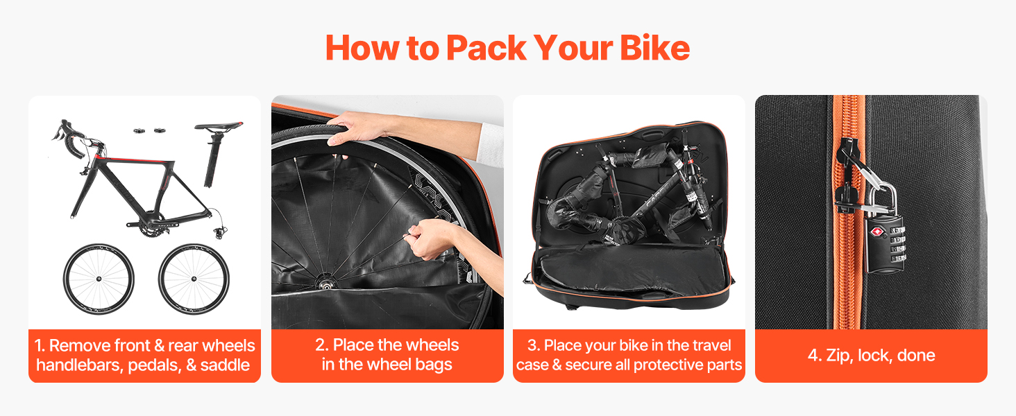 Intuitívne usporiadanie urýchľuje prípravu. Prenosný kufrík na bicykel používa špeciálne úchyty a popruhy na upevnenie rámu, kolies a výstroja, takže ušetríte čas a všetko zostane stabilné počas prepravy.