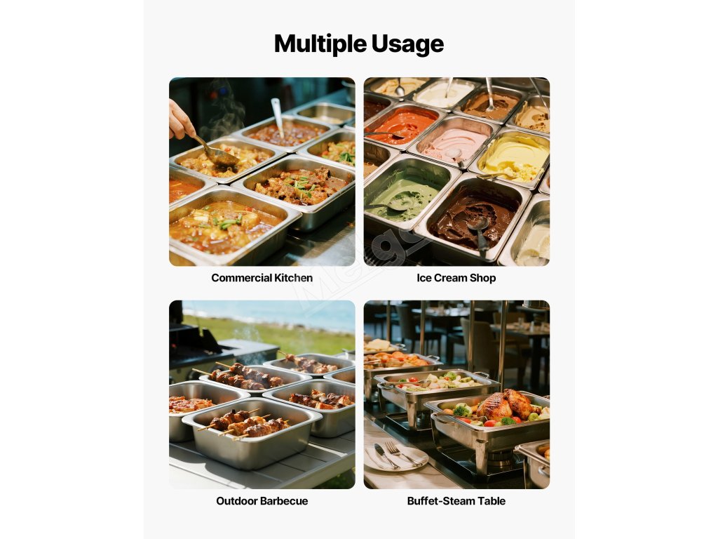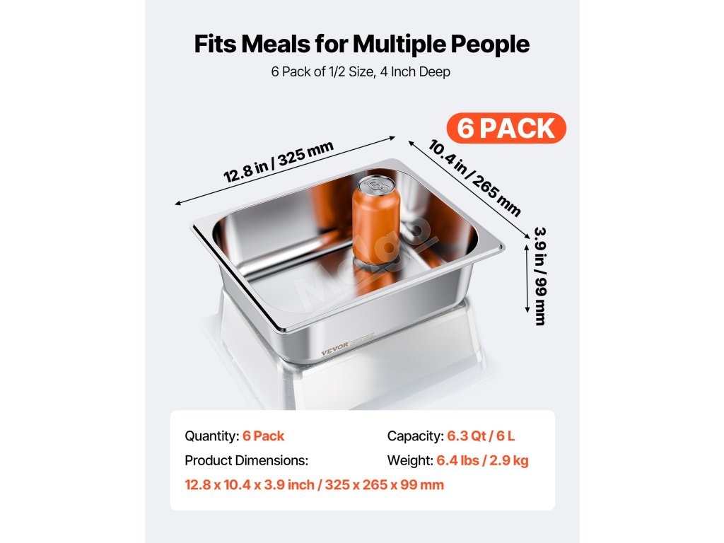Táto parná misa je vyrobená z 22-stupňovej nehrdzavejúcej ocele SS201 komerčnej triedy, ktorá ponúka pevnosť a odolnosť proti korózii. Panvica s veľkosťou 1/2 polovice, hĺbkou 4 palce a dizajnom 6 kusov spĺňa každodenné potreby varenia a je ideálna na varenie, skladovanie a vystavovanie potravín, ako je mäso, zelenina, ovocie, a dokonca aj zmrzlina.