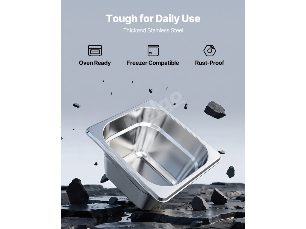 Nerezová parná gastronádoba pre catering 1/6 × 100mm, 1.7L, 6 ks