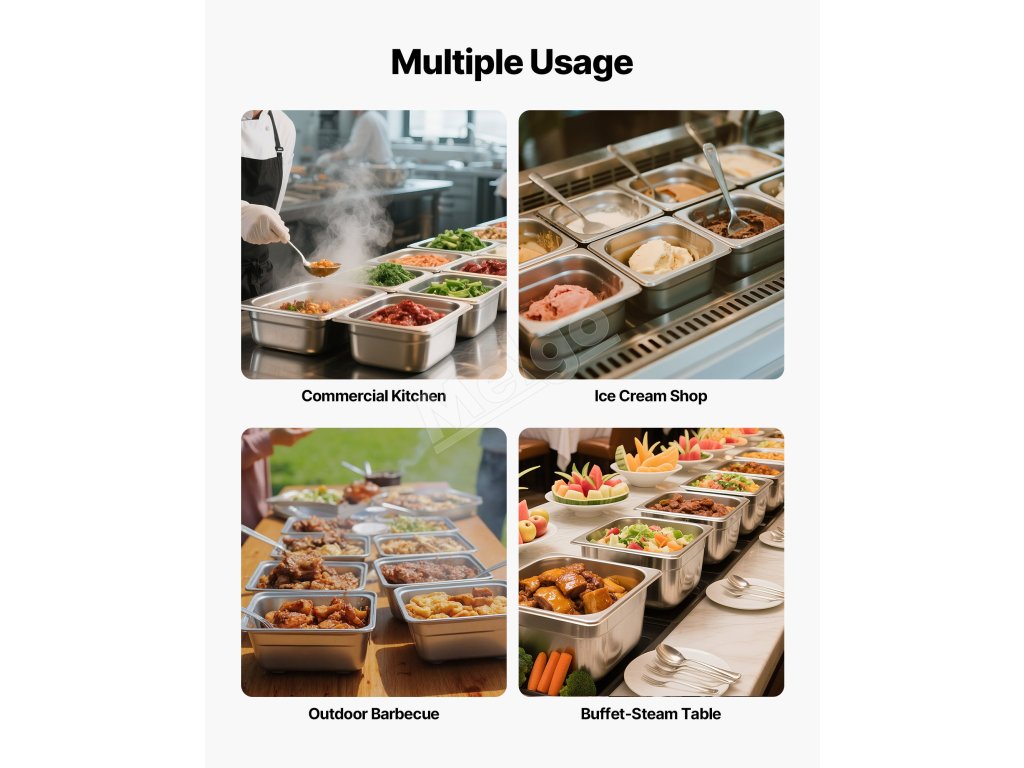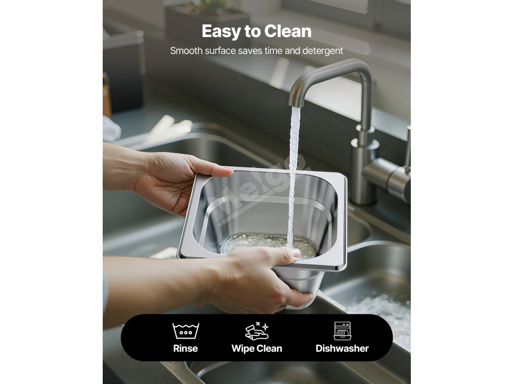 Táto parná misa je vyrobená z 22-stupňovej nehrdzavejúcej ocele SS201 komerčnej triedy, ktorá ponúka pevnosť a odolnosť proti korózii. Panvica s veľkosťou 1/6, hĺbkou 4 palce a šesťkomorovým dizajnom spĺňa každodenné potreby varenia a je ideálna na varenie, skladovanie a vystavovanie potravín, ako je mäso, zelenina, ovocie, a dokonca aj zmrzlina.