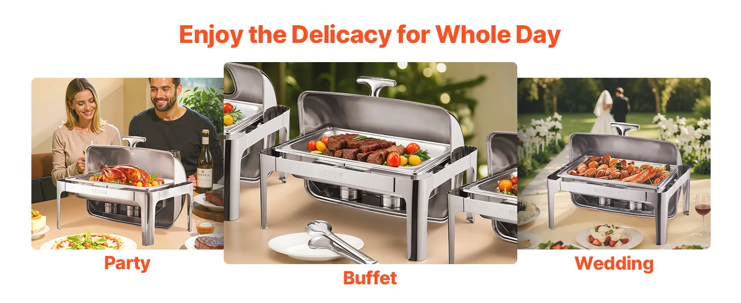 A3: Určite! Tento chafing dish je ideálny na vnútorné aj vonkajšie podujatia, ako sú bufety, večierky alebo cateringové služby. Len sa uistite, že ju používate na bezpečnom, stabilnom mieste, aby ste zabránili prevráteniu.