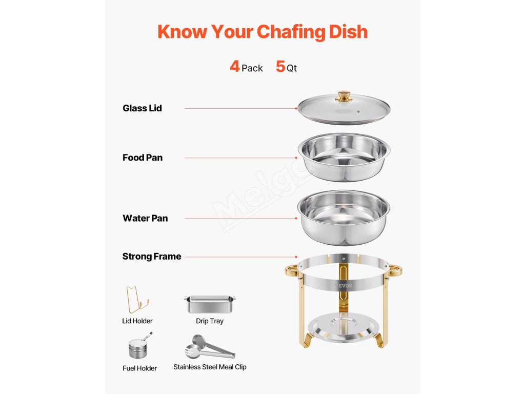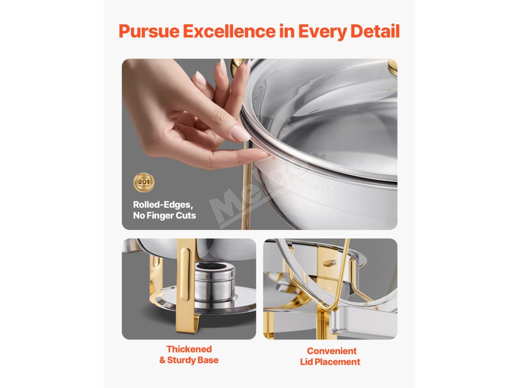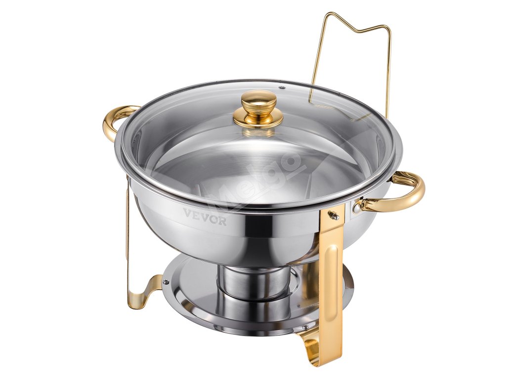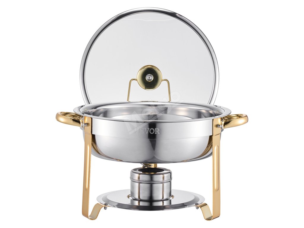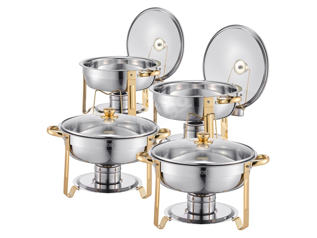 Ohrevný bufetový set 4 ks, 5 Qt, nerez, 4 panvy, sklenené veko, zlatá