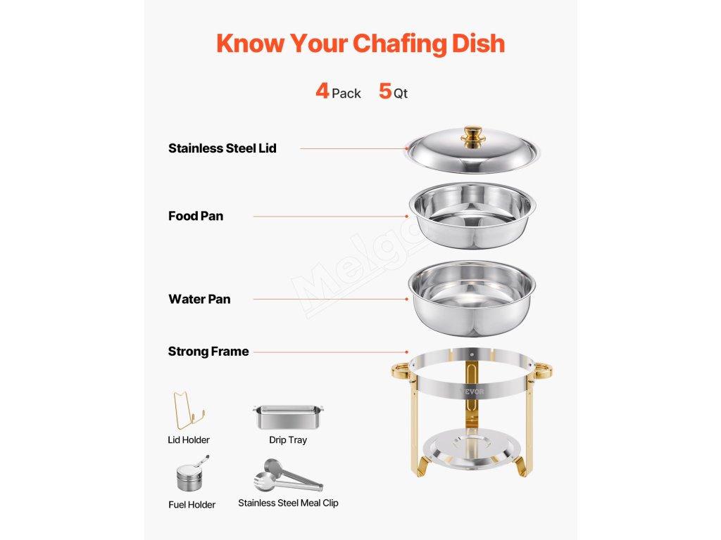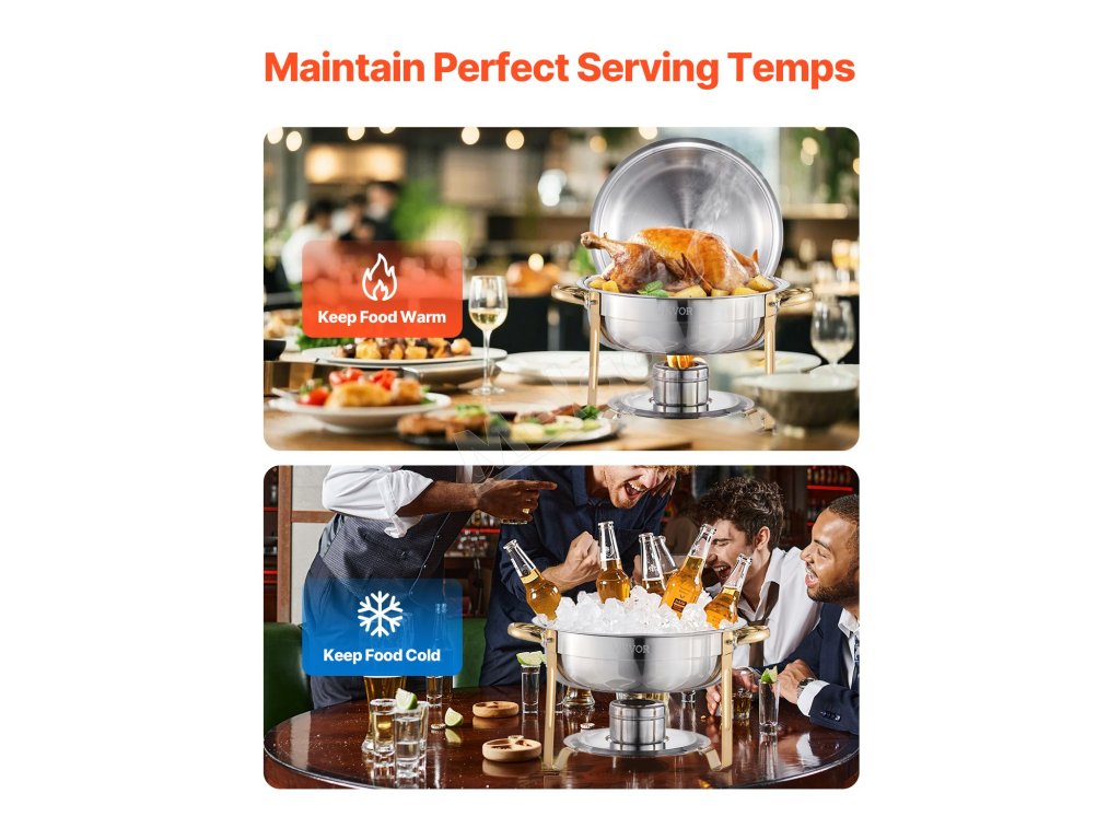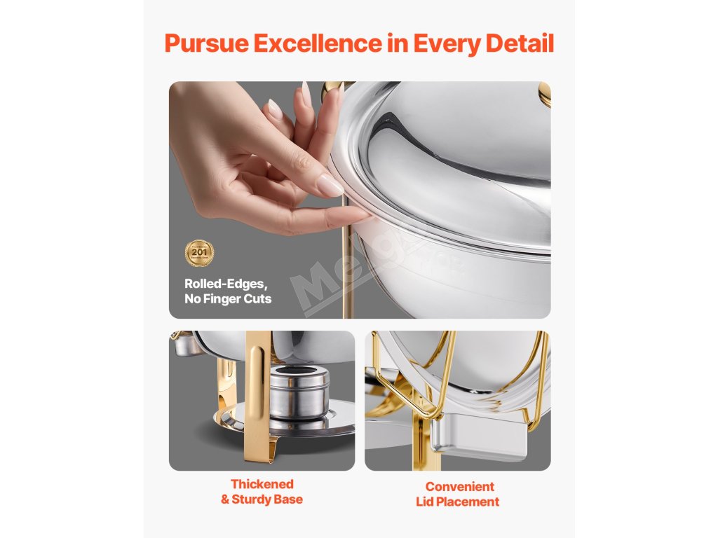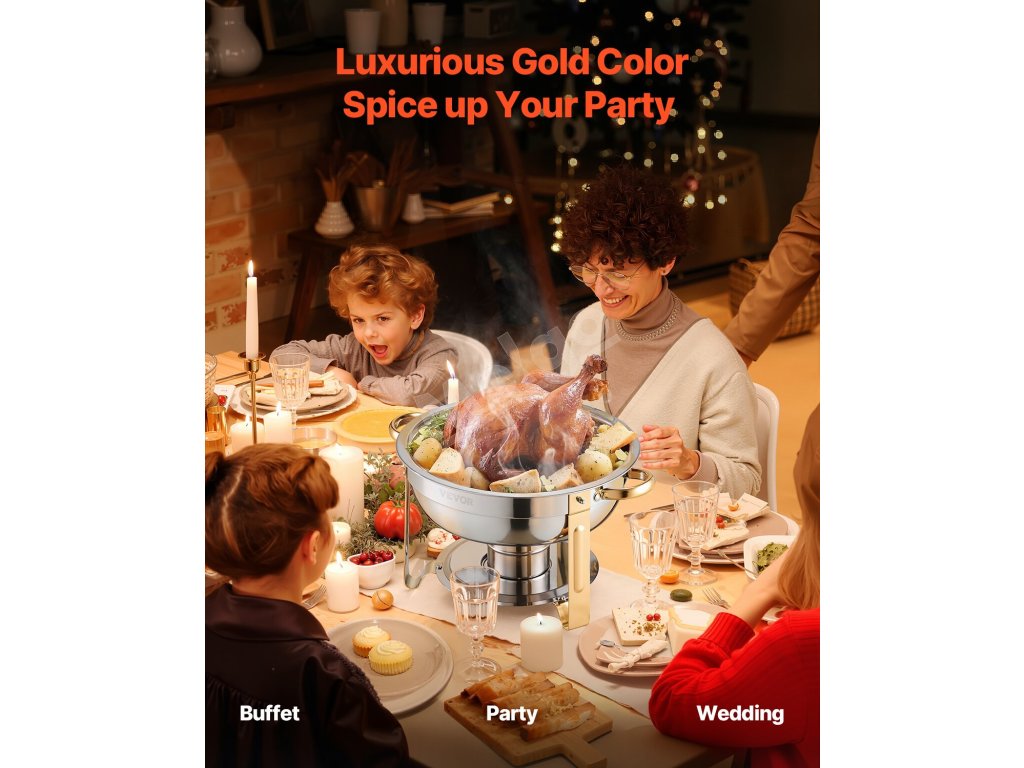 Ohrevný bufetový set 5 qt, 4 ks, nerez, 4 plné panvice, zlatý