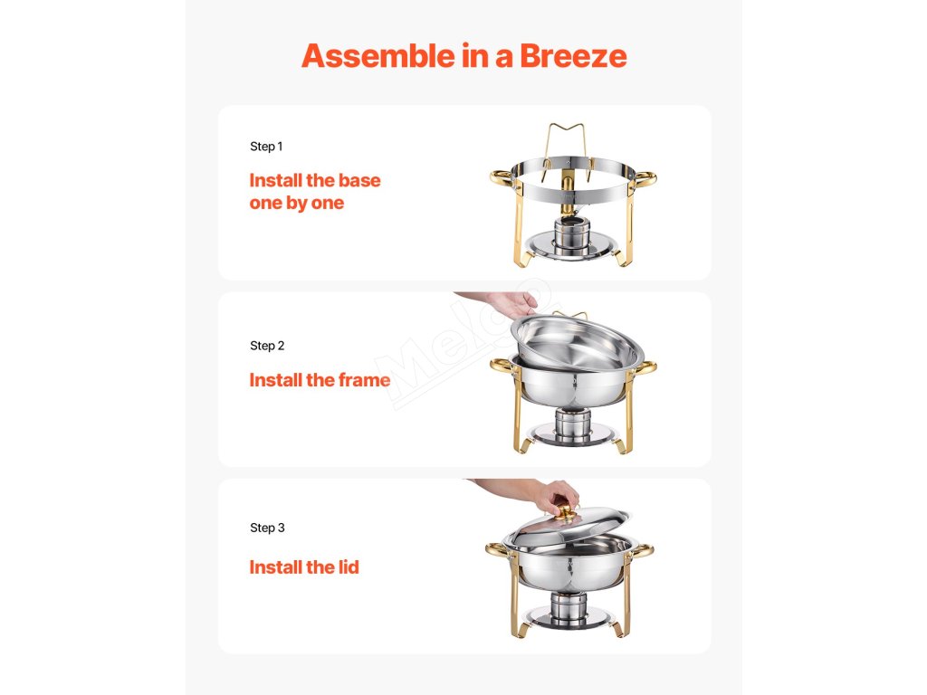 A2: Áno, chafing dish je vyrobený z odolnej nehrdzavejúcej ocele, vďaka ktorej je čistenie hračkou. Nádoba na jedlo aj nádoba na vodu sú odnímateľné na jednoduché umývanie a rám možno po každom použití utrieť.