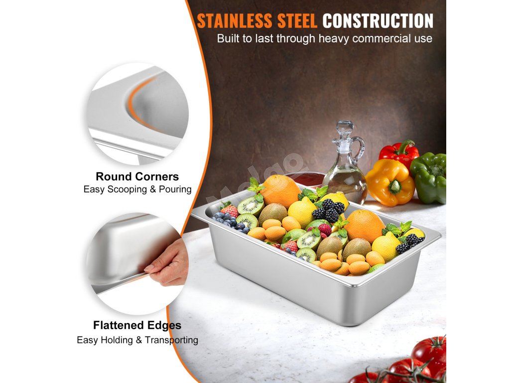 Plnohodnotné nádoby na potraviny VEVOR sú dôkazom našej snahy o kvalitu. Tieto nádoby sú vyrobené z vysokokvalitnej nehrdzavejúcej ocele a vydržia nároky komerčných kuchýň. Hoci sú silné a funkčné, dodávajú sa za prijateľné ceny, čo z nich robí vynikajúcu voľbu pre kupujúcich, ktorí dbajú na rozpočet. Hrúbka 22 mm zaručuje, že sú dostatočne robustné na každodenné používanie bez toho, aby boli príliš ťažké.