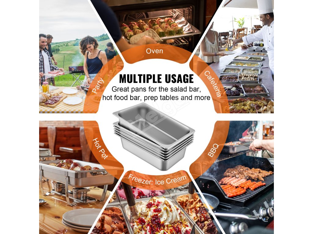 Všestrannosť našich parných stolových panvíc je kľúčom k vášmu kuchynskému arzenálu. Dajú sa použiť na rôzne účely, od servírovania jedla na cateringových podujatiach až po skladovanie potravín v mrazničkách. Vďaka ich odolnosti a jednoduchému čisteniu sú vhodné na komerčné aj domáce použitie. Nezáleží na tom, či ste profesionálny cateringový pracovník alebo pripravujete na základe svojich domácich skúseností, tieto panvice sú vynikajúcim doplnkom každého náradia.