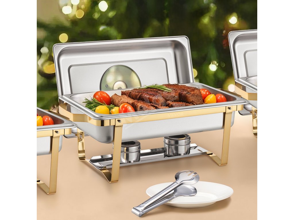 A3: Určite! Tento chafing dish je ideálny na vnútorné aj vonkajšie podujatia, ako sú bufety, večierky alebo cateringové služby. Len sa uistite, že ju používate na bezpečnom, stabilnom mieste, aby ste zabránili prevráteniu.