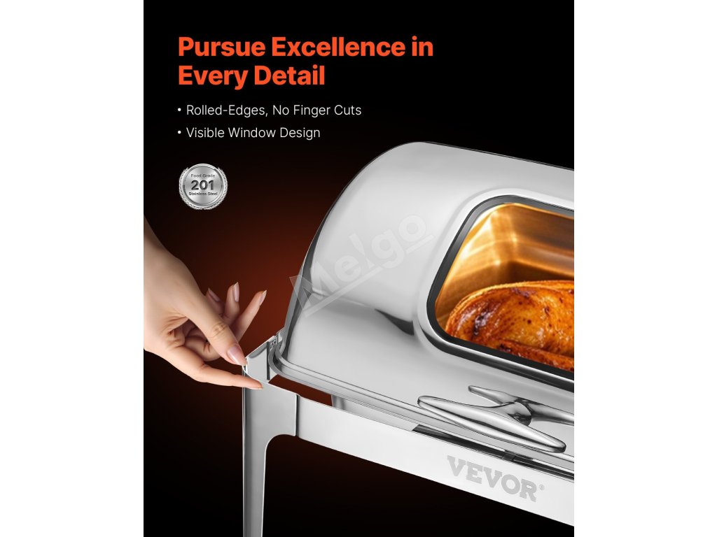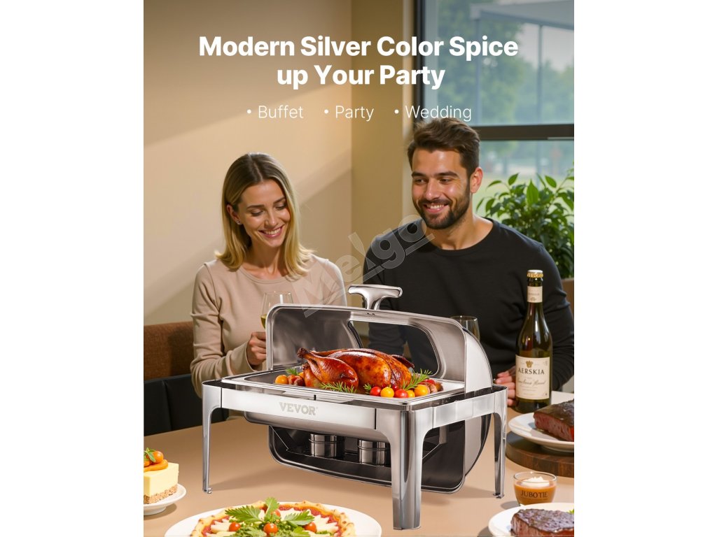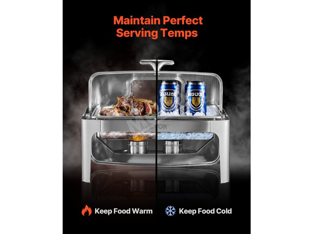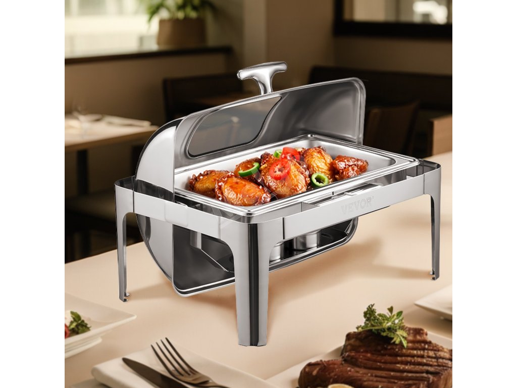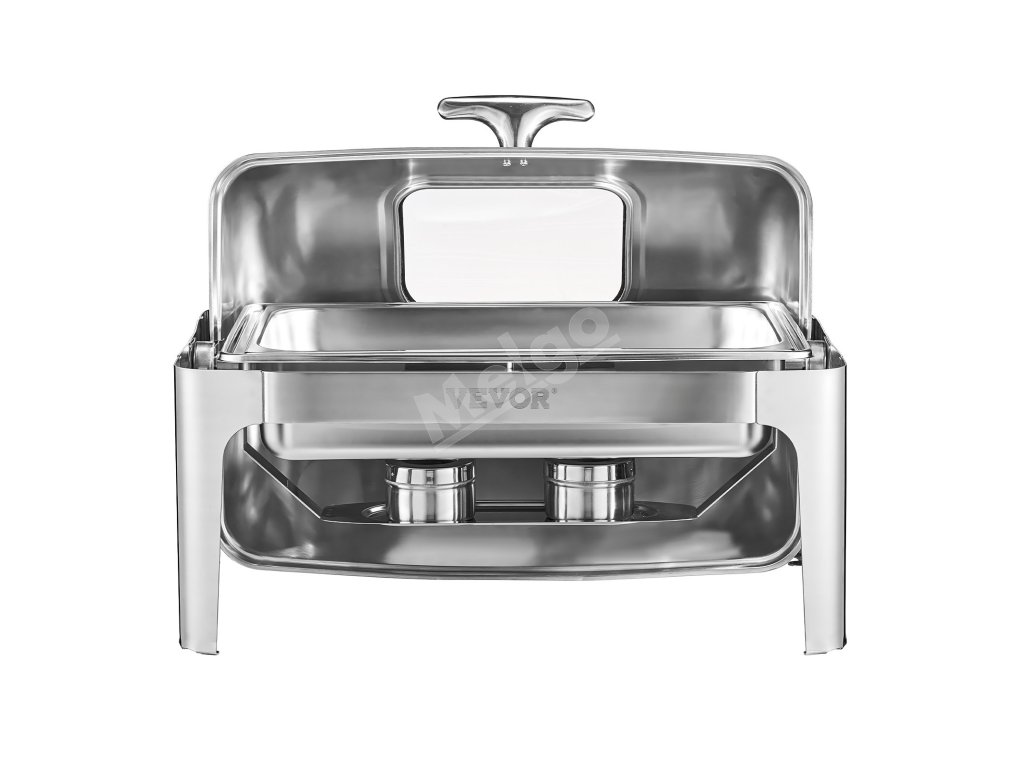Servírovací chafer 9 Qt nerez, 2 polovičné panvy, sklápací stojan