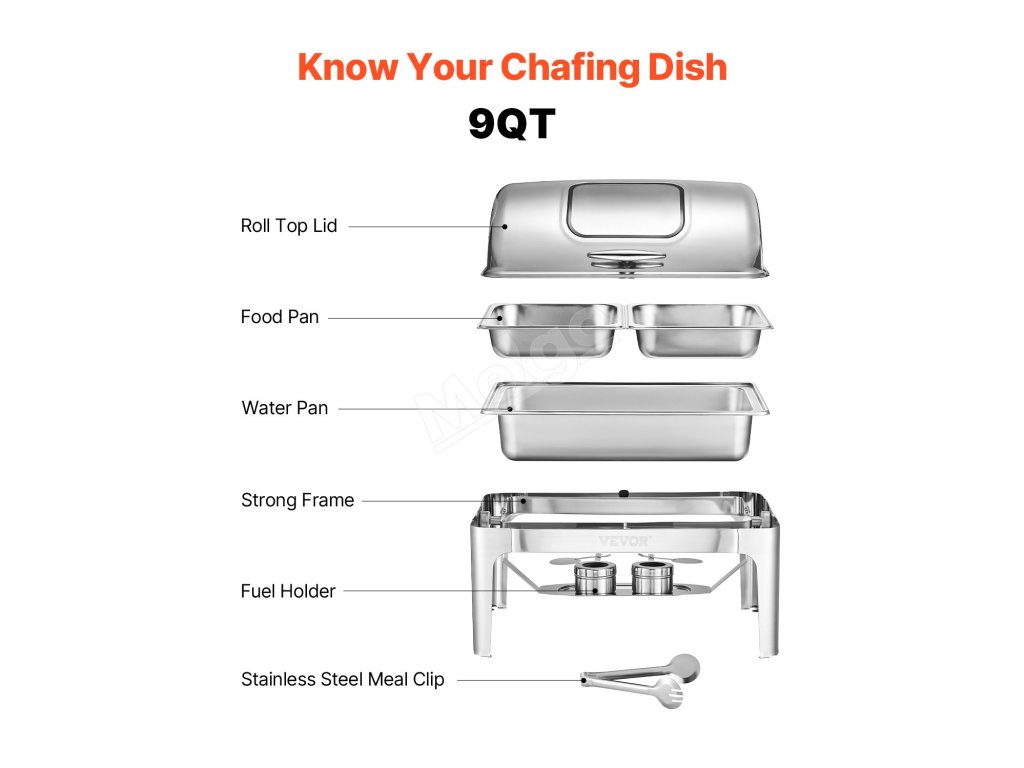 Otázka č. 1: Môže sa tento chafing dish používať na teplé aj studené jedlo? A1: Táto chafingová misa je špeciálne navrhnutá na udržiavanie teplého jedla. Hoci je ideálna na horúce pokrmy, možno ju použiť aj na studené jedlá, pokiaľ sú uložené bez ohrevu. Na dosiahnutie najlepších výsledkov ju odporúčame používať na teplé jedlá. Otázka 2: Dá sa chafingová miska ľahko čistiť? A2: Áno, chafing dish je vyrobený z odolnej nehrdzavejúcej ocele, vďaka ktorej je čistenie hračkou. Nádoba na jedlo aj nádoba na vodu sú odnímateľné na jednoduché umývanie a rám možno po každom použití utrieť. Otázka č. 3: Môžem túto panvicu používať vonku? A3: Určite! Tento chafing dish je ideálny na vnútorné aj vonkajšie podujatia, ako sú bufety, večierky alebo cateringové služby. Len sa uistite, že ju používate na bezpečnom, stabilnom mieste, aby ste zabránili prevráteniu.