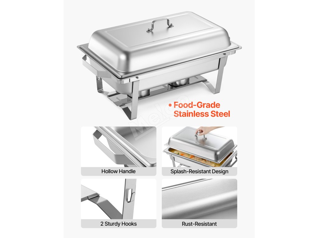 Servírovací ohrievač 9.91L, 4 ks, nerezová oceľ, s pokrievkami