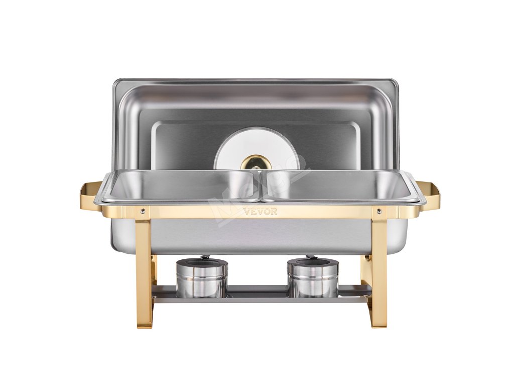 Otázka č. 1: Môže sa táto chafingová miska používať na teplé aj studené jedlo?Odpoveď: Táto chafingová miska je špeciálne navrhnutá na udržiavanie teplého jedla. Hoci je ideálna na horúce pokrmy, možno ju použiť aj na studené pokrmy, pokiaľ sú uložené bez ohrevu. Na dosiahnutie najlepších výsledkov ju odporúčame používať na teplé jedlá.Q2: Dá sa táto chafingová miska ľahko čistiť?A2: Áno, chafingová miska je vyrobená z odolnej nehrdzavejúcej ocele, vďaka ktorej je čistenie hračkou. Miska na jedlo aj nádoba na vodu sú odnímateľné na jednoduché umývanie a rám možno po každom použití utrieť do čistého stavu.Q3: Môžem túto chafingovú misu používať vonku?A3: Určite! Tento chafing dish je ideálny na vnútorné aj vonkajšie podujatia, ako sú bufety, večierky alebo cateringové služby. Len sa uistite, že ju používate na bezpečnom, stabilnom mieste, aby ste zabránili prevrhnutiu.