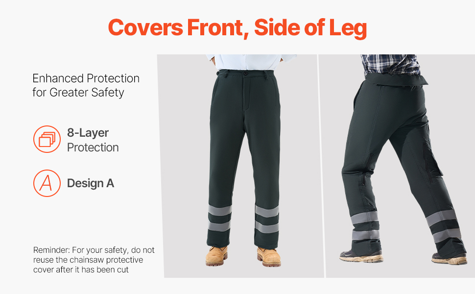 Naše ochranné nohavice na motorovú pílu pokrývajú prednú časť a obe strany nôh, čím poskytujú lepšiu ochranu pri práci. V záujme bezpečnosti nezabudnite: Po rezaní nepoužívajte chapsy na reťazovú pílu opakovane.