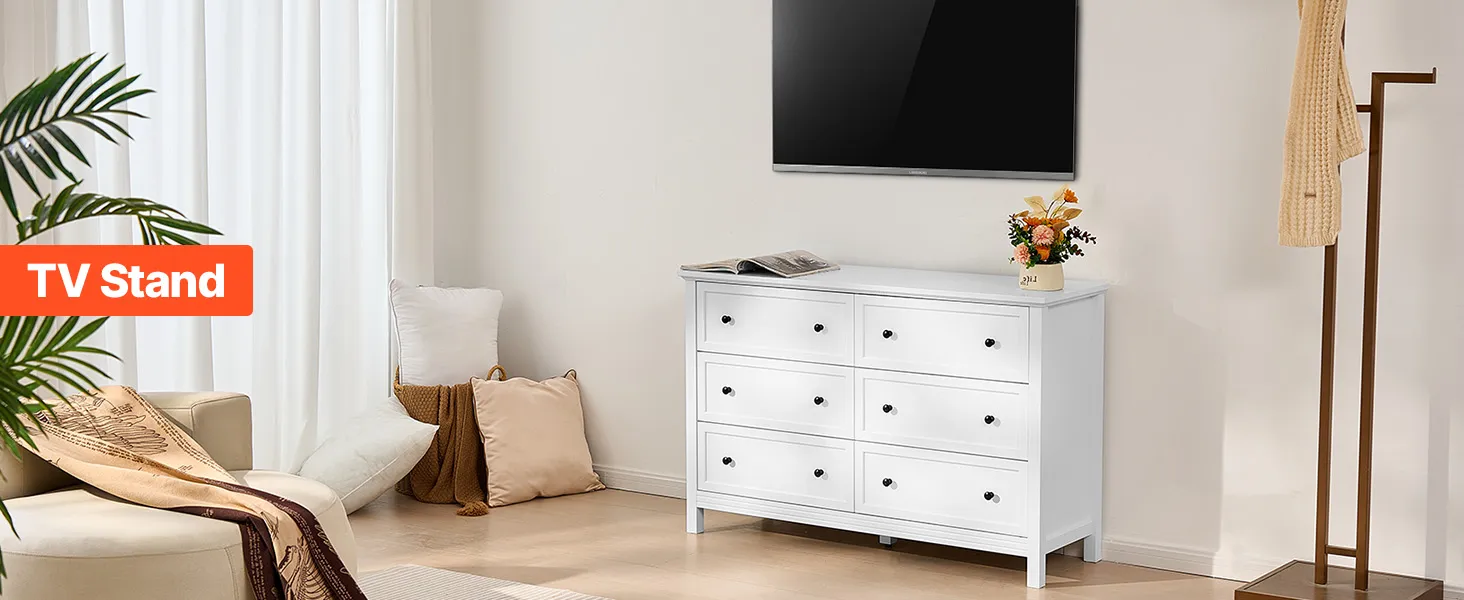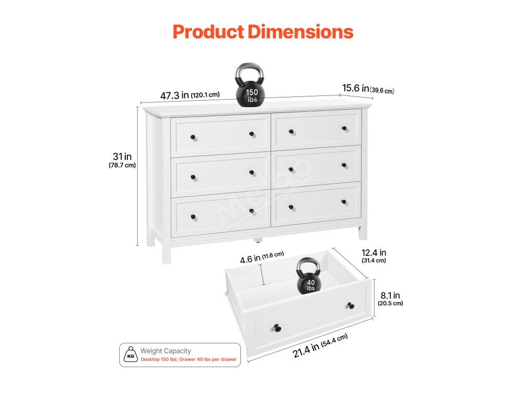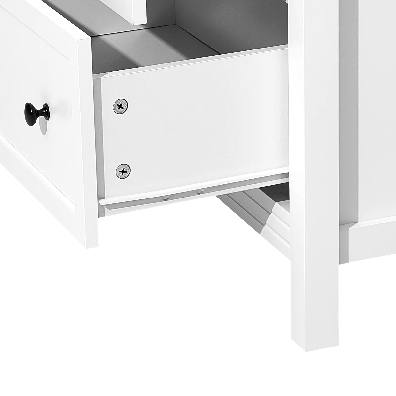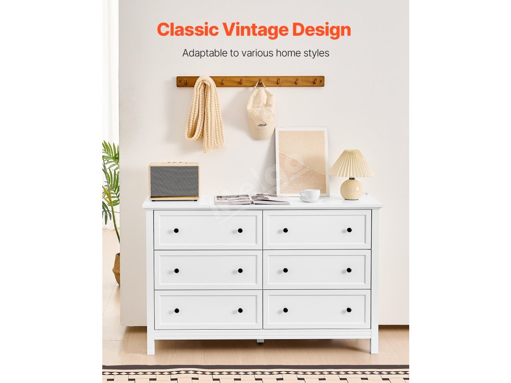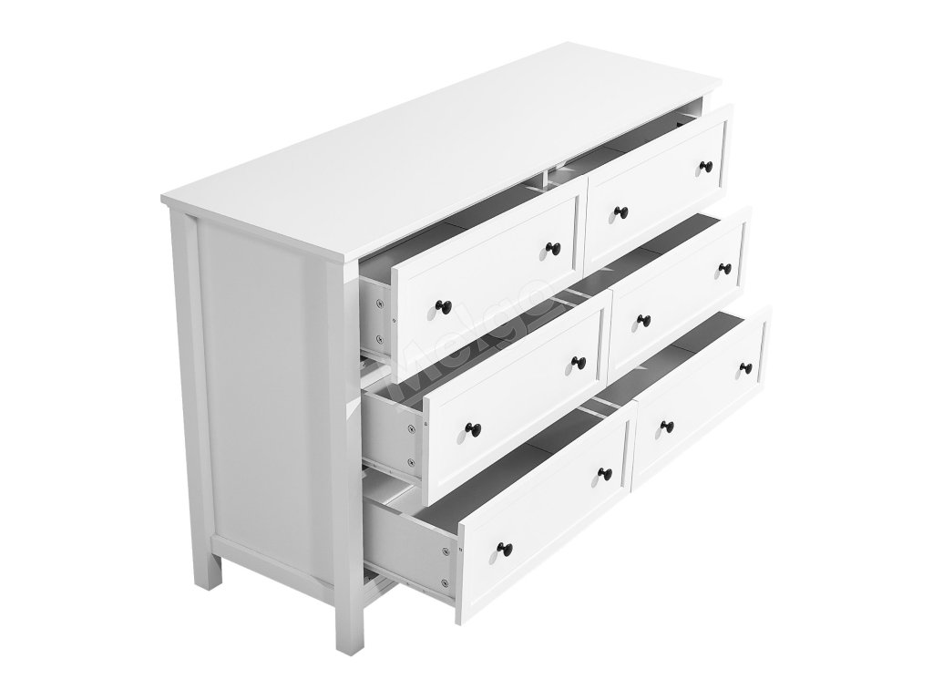 Komoda 6 zásuviek, drevená, biela, s poistkou proti prevráteniu