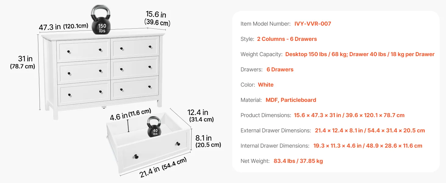 Táto drevená zásuvková komoda maximalizuje priestor vašej domácnosti. Viacero zásuviek poskytuje súkromný úložný priestor, ktorý je ideálny na oblečenie, uteráky, klobúky a iné predmety.