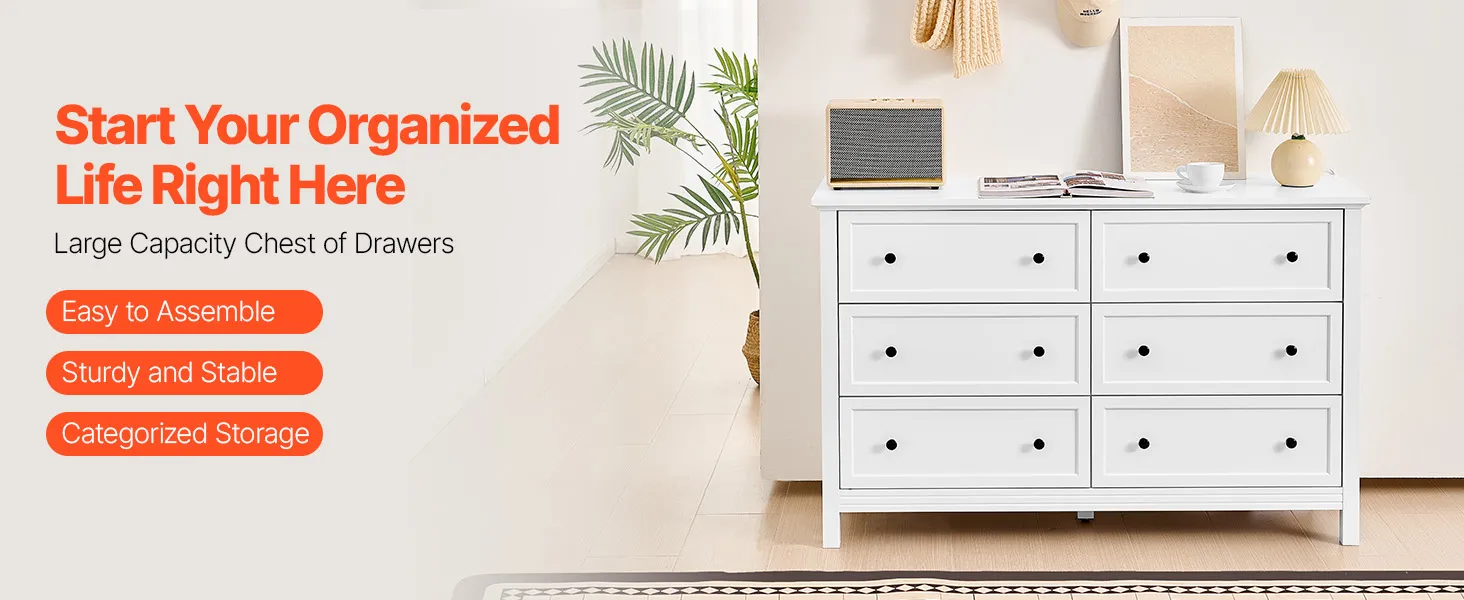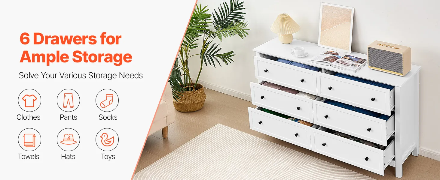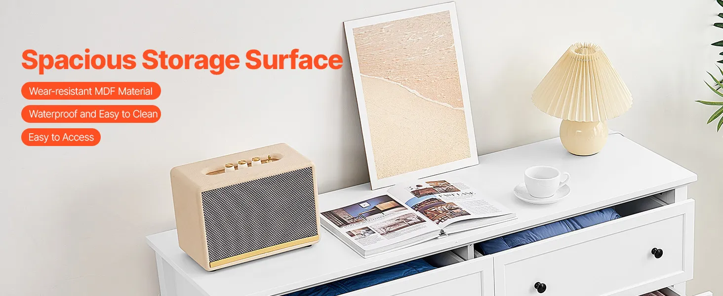Táto drevená zásuvková komoda maximalizuje priestor vašej domácnosti. Viacero zásuviek poskytuje súkromný úložný priestor, ideálny na oblečenie, uteráky, klobúky a iné predmety.