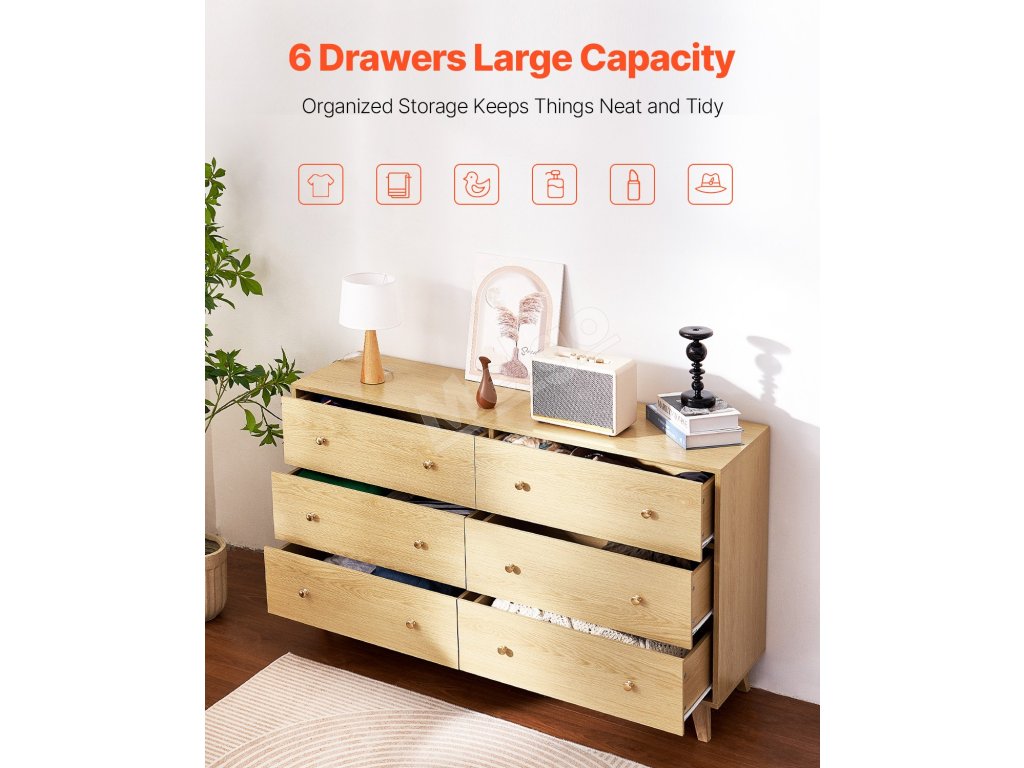 Komoda 6 zásuviek, drevená, zásuvky na koľajničkách, proti prevráteniu