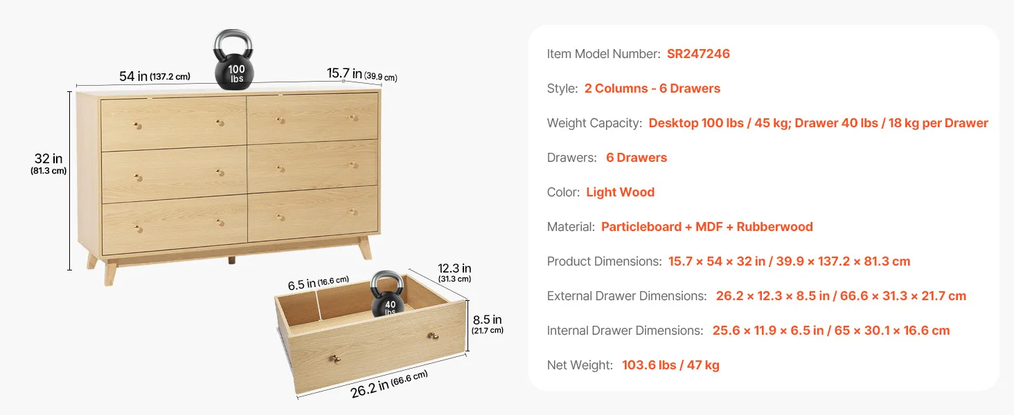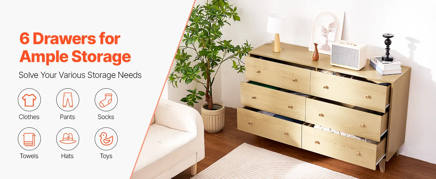 Táto drevená zásuvková komoda maximalizuje priestor vašej domácnosti. Viacero zásuviek poskytuje súkromný úložný priestor, ktorý je ideálny na oblečenie, uteráky, klobúky a iné predmety.