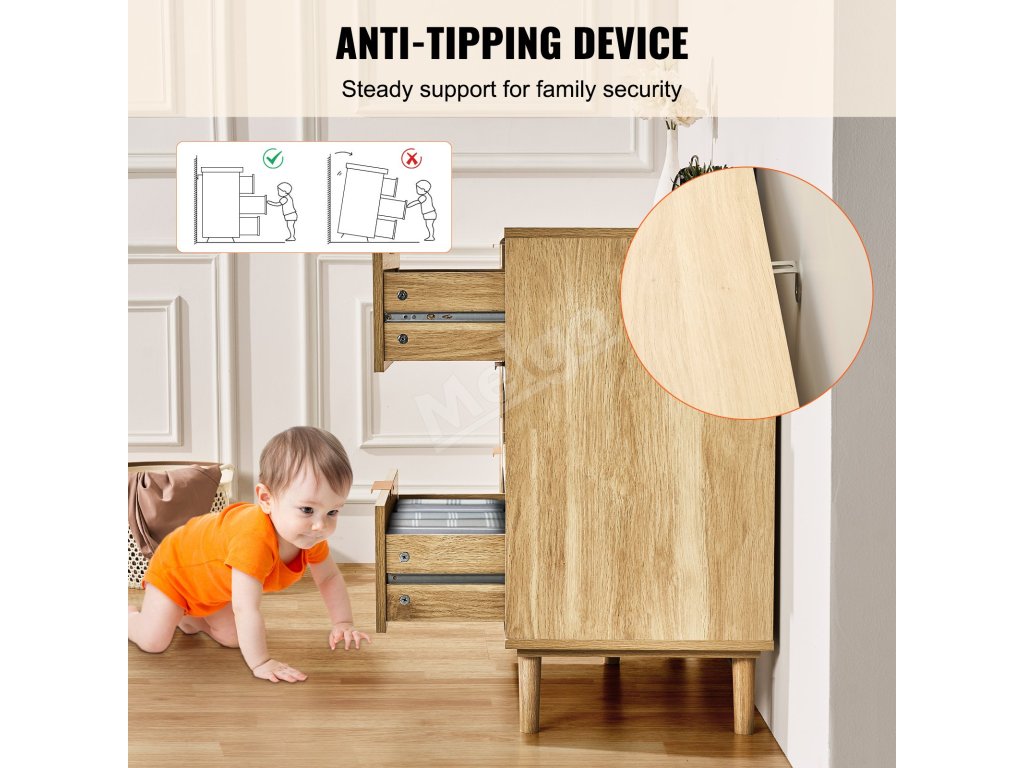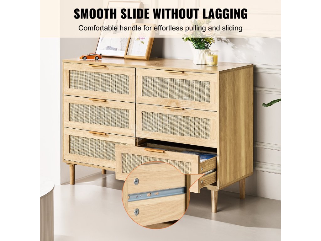 Táto ratanová komoda do spálne je navrhnutá s ohľadom na vaše pohodlie. Zariadenie proti prevráteniu ponúka spoľahlivú oporu a kovové posuvníky na každej zásuvke zabezpečujú hladké a tiché otváranie a zatváranie, vďaka čomu sa stane užívateľsky prívetivým doplnkom vašej domácnosti.