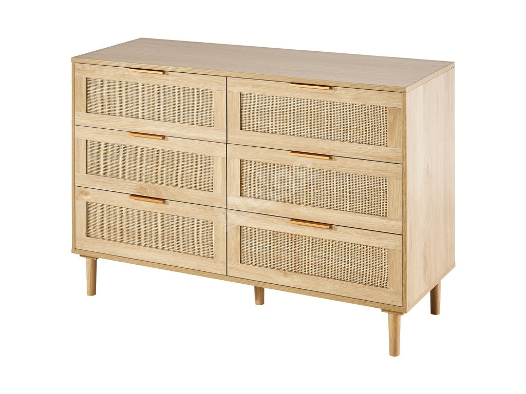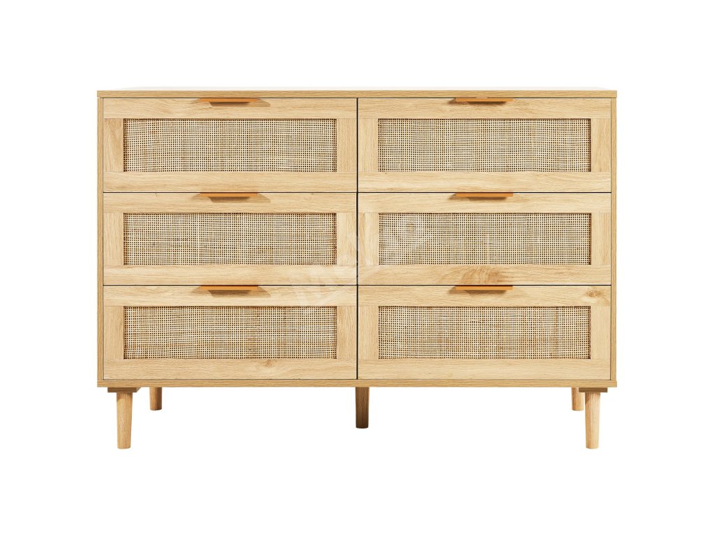 Ratanová komoda so 6 zásuvkami, prírodný ratan, hnedá, pevné nohy