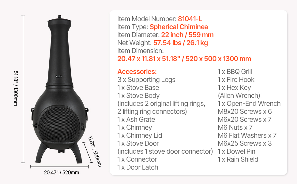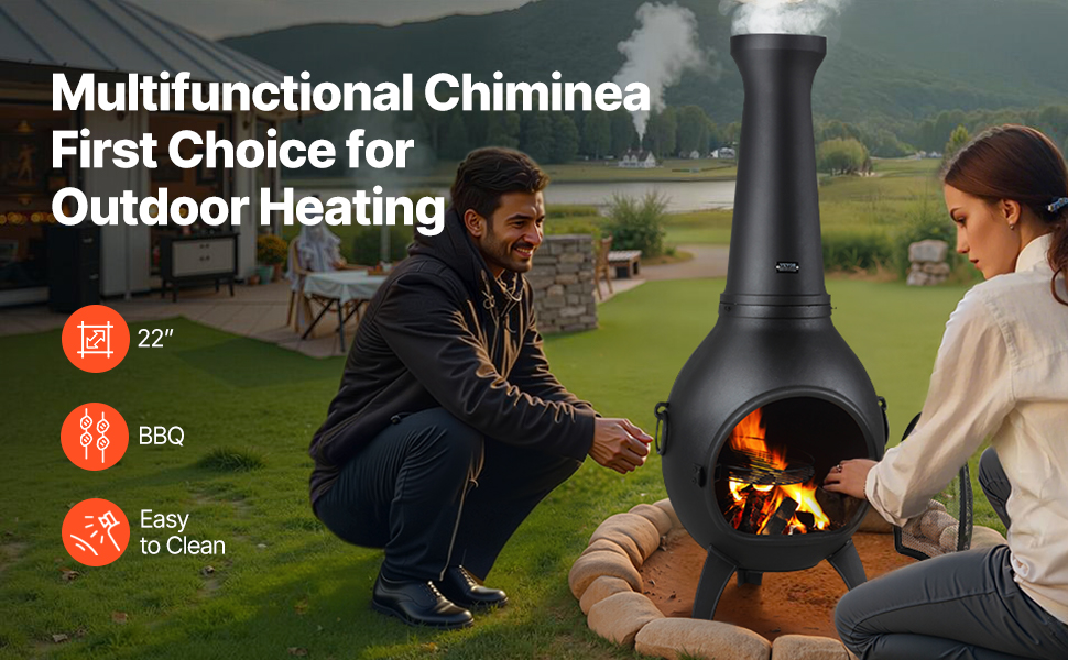 Vylepšite svoje outdoorové zážitky s našou odolnou chimineou, ktorá je odolná voči vysokým teplotám! Je vyrobená z prvotriednych materiálov a dodáva sa s vodotesným skladovacím plášťom na dlhodobé používanie. Vďaka 22-palcovému guľovému dizajnu s priehľadnou sieťovinou si môžete vychutnávať plamene, zatiaľ čo vďaka varnej ploche je grilovanie hračka.