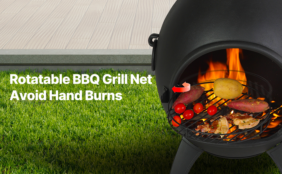 Táto kovová chiminea je vybavená otočným grilovacím roštom, vďaka ktorému je grilovanie bezpečnejšie, pretože nehrozí riziko popálenia.