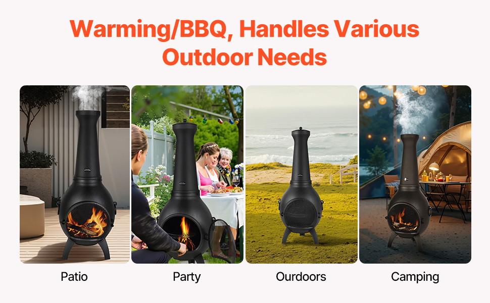 Táto všestranná chiminea je ideálna na rôzne vonkajšie potreby. Či už ide o vašu záhradu, párty, kempovanie alebo akúkoľvek vonkajšiu aktivitu, všetko zvládne bez námahy.