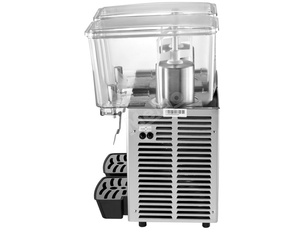 Nápojový automat s dvoma nádržami s objemom 12 l na nádrž, kompaktný a zároveň silný vo výkone. Rozšírené miešadlá umožňujú účinnejšie miešanie v rozsahu 360°. Gumové tesniace tesnenia eliminujú únik šťavy.