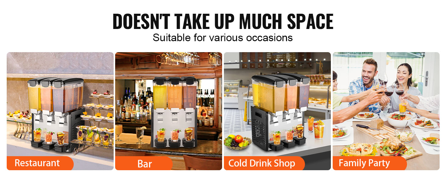 Tento nápojový automat sa používa predovšetkým na chladenie nápojov. Je vhodný na rôzne príležitosti vrátane rodinných osláv, reštaurácií, hotelov, kín atď. a pojme rôzne druhy nápojov vrátane kávy, ovocných džúsov, sójového mlieka, mliečnych koktailov, koktailov, jogurtov a kávy.