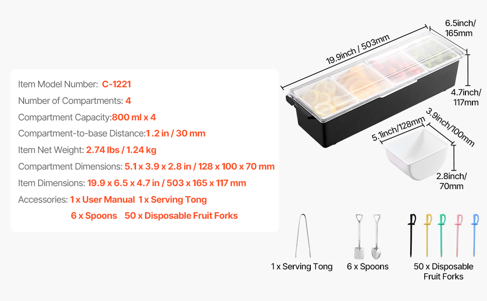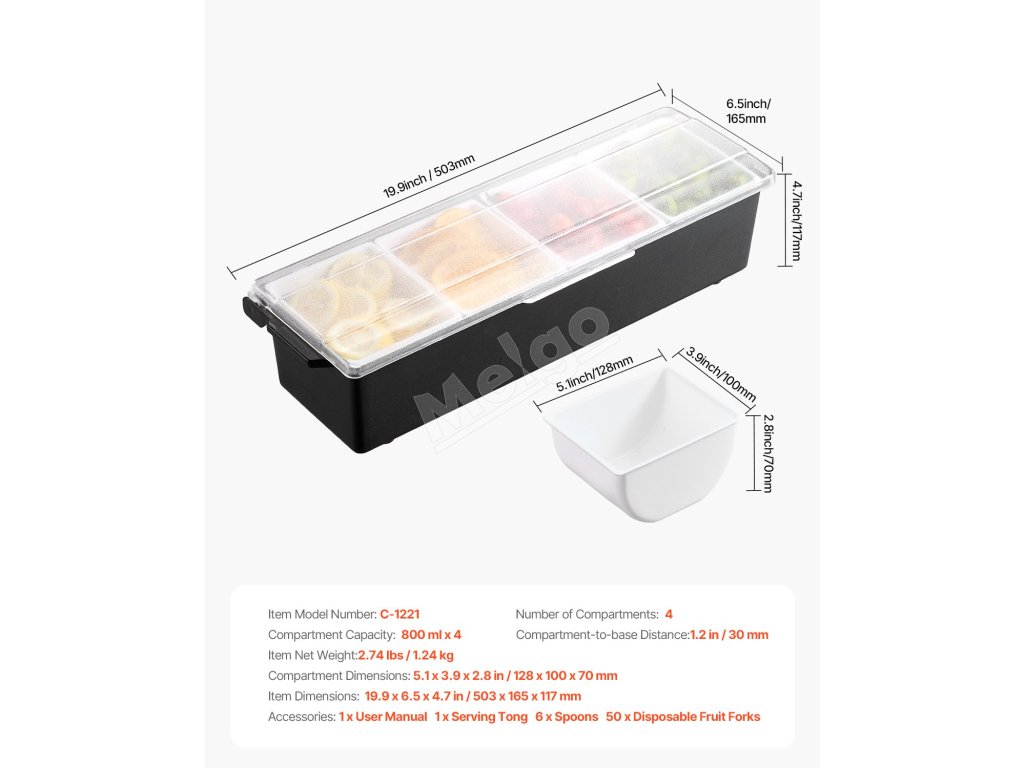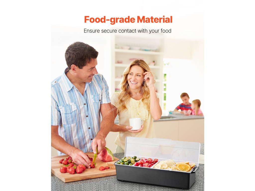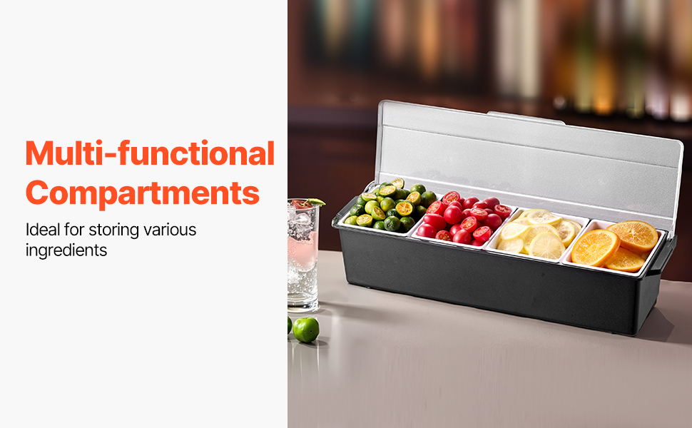 Vďaka viacerým priestranným priehradkám vám naša barová dóza na ovocie s vekom umožňuje organizovať a prispôsobiť si skladovanie rôznym prísadám, takže je vhodná na všetky vaše potreby skladovania potravín.
