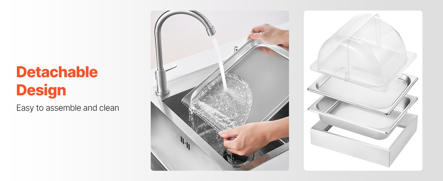 Vďaka odnímateľnej konštrukcii je montáž a čistenie nášho stojana s dávkovačom korenín v bufete jednoduché, čo zvyšuje každodenné pohodlie. Ľahko rozoberte každú časť na dôkladné čistenie, čím zabezpečíte, že každý kút zostane hygienický.