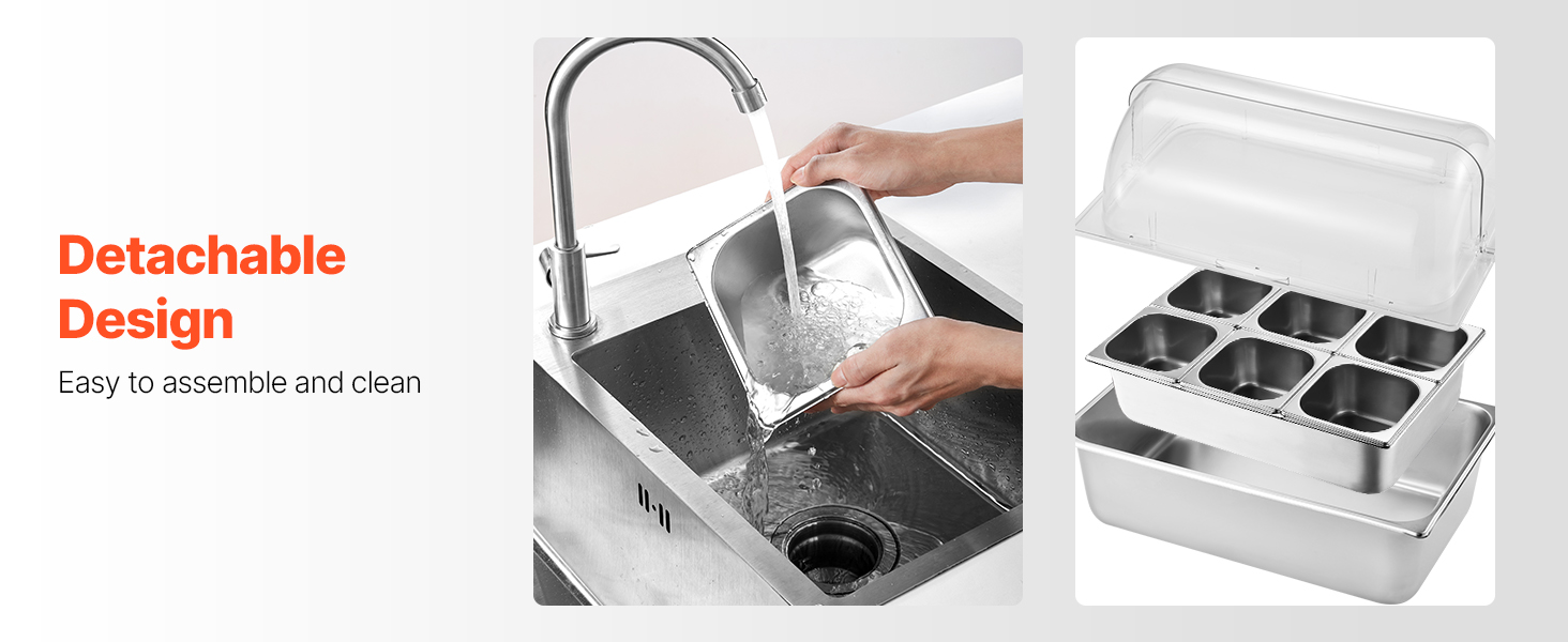 Vďaka odnímateľnej konštrukcii je montáž a čistenie nášho stojana s dávkovačom korenín v bufete jednoduché, čo zvyšuje každodenné pohodlie. Ľahko rozoberte každú časť na dôkladné čistenie, čím zabezpečíte, že každý kút zostane hygienický.