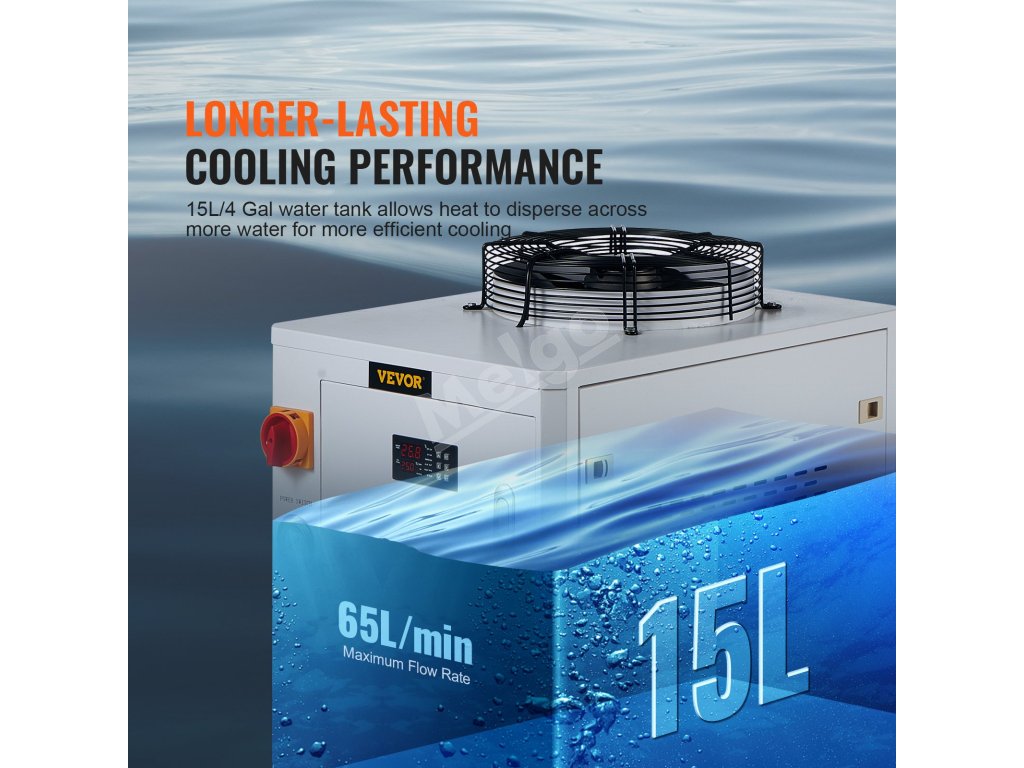 Chladič vody 1500W s kompresorom 15L nádrž 65 L/min pre CO2 laser