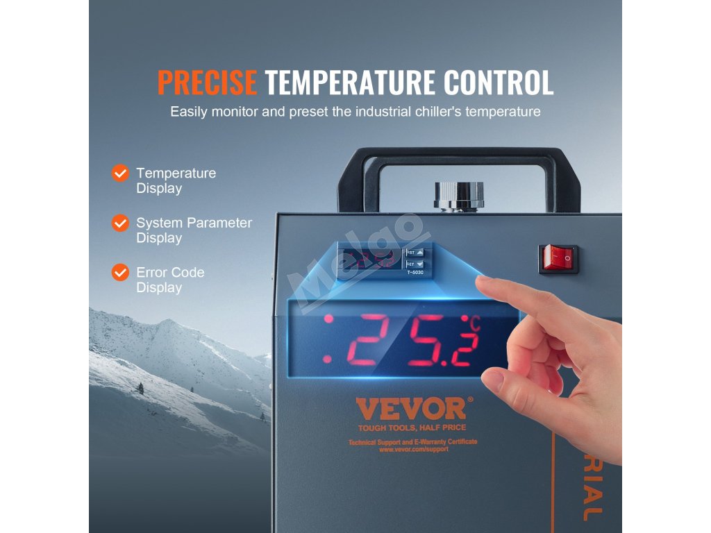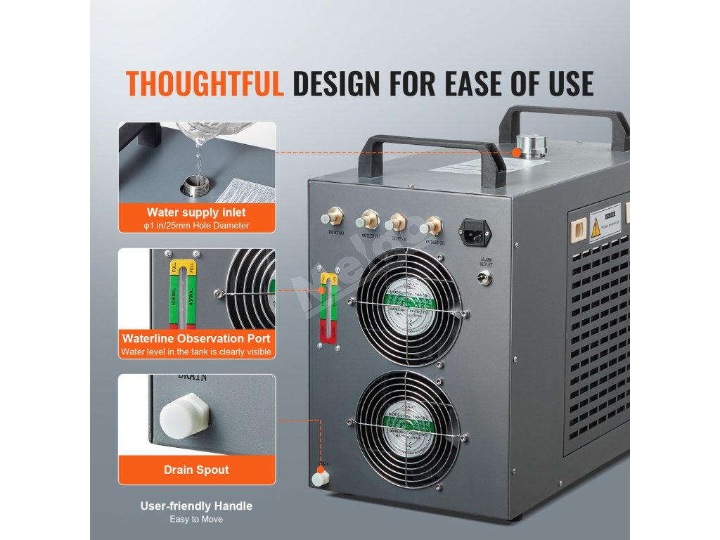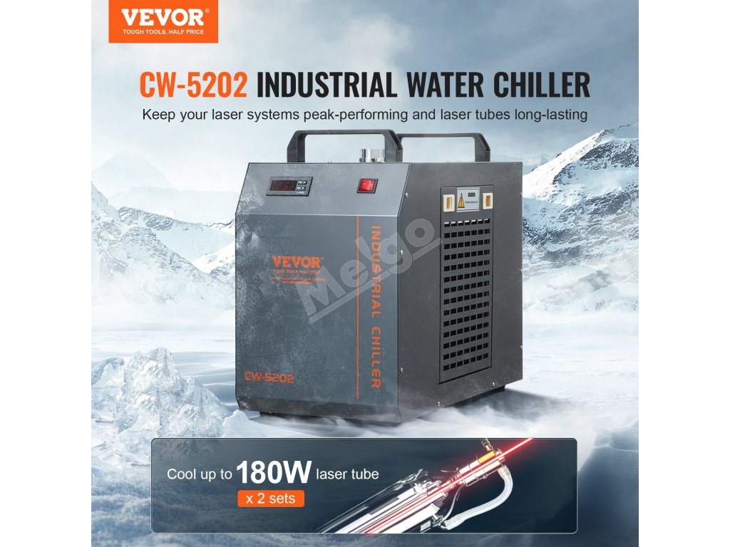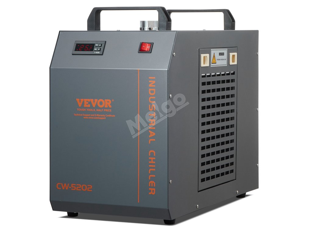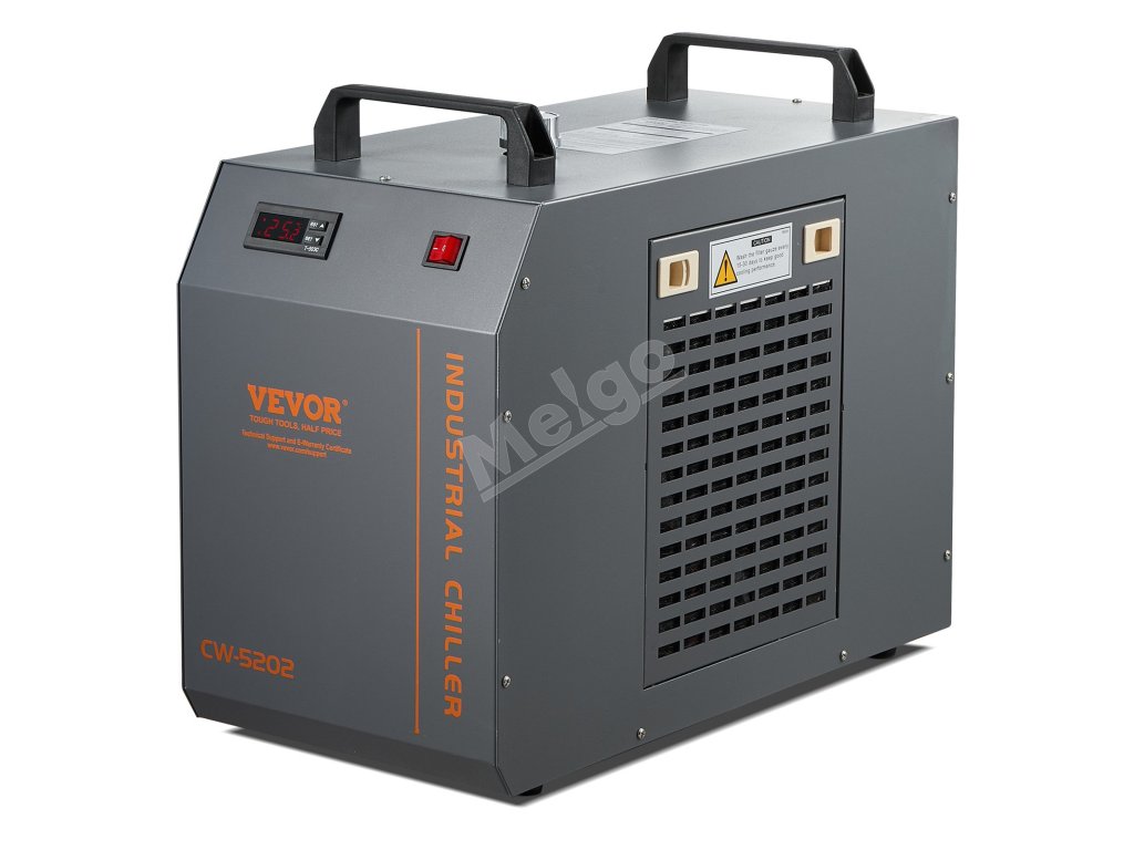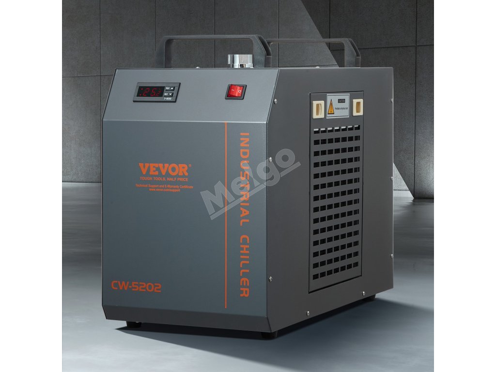 Náš priemyselný chladič CW-5202 je vybavený zabudovaným kompresorom pre stroje vyžadujúce kompaktné riešenia chladenia vodou. So 7-litrovou nádržou na vodu a zabudovaným chladiacim ventilátorom na vynikajúcu ventiláciu je ideálny pre 2 sady laserových gravírovacích strojov CO₂ s laserovými trubicami s výkonom do 180 W.