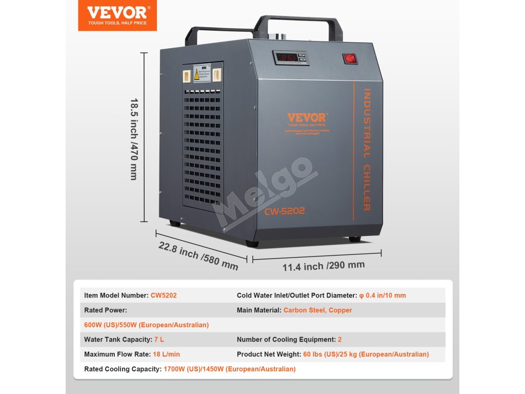 Vodný chladič pre CO2 laser CW-5202 s kompresorom, nádrž 7 l, 18 l/min