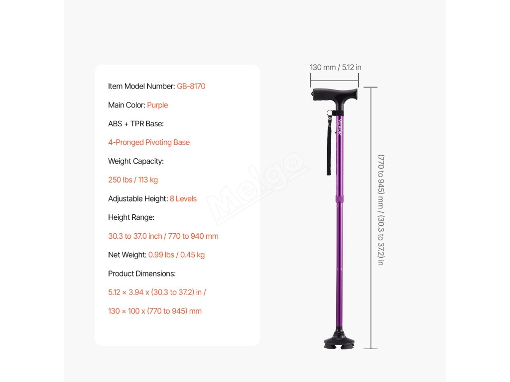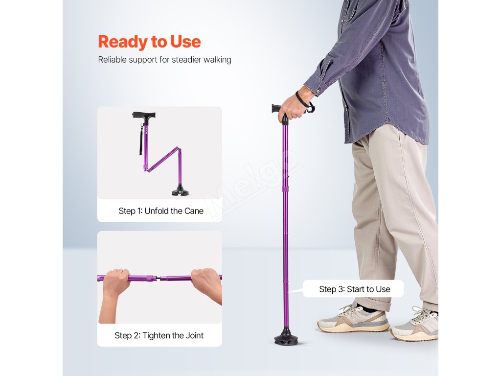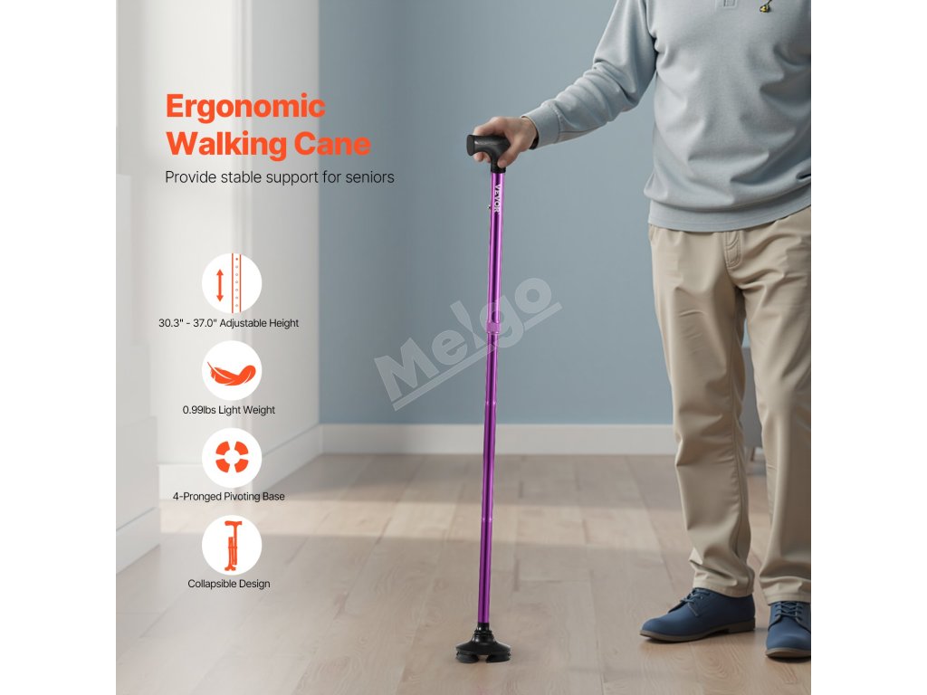 Táto hliníková prenosná ľahká vychádzková palica so 4-ramennou otočnou základňou s protišmykovými podložkami pod nohy ponúka vynikajúcu priľnavosť a stabilitu na tráve, štrku, drevených podlahách a dlaždiciach, čím zabezpečuje bezpečnú a stabilnú chôdzu v rôznych terénoch.