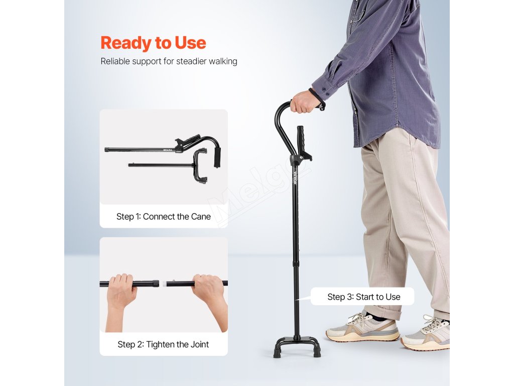 Táto vychádzková palica sa dodáva s protišmykovou štvorhrannou základňou, ktorá ponúka veľký kontakt so zemou a zvýšenú trakciu na zabezpečenie stability a pohodlia pri chôdzi. Bez námahy zvláda rôzne povrchy, čím pomáha používateľom chodiť s istotou a užívať si bezpečnejšiu chôdzu.