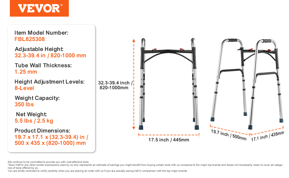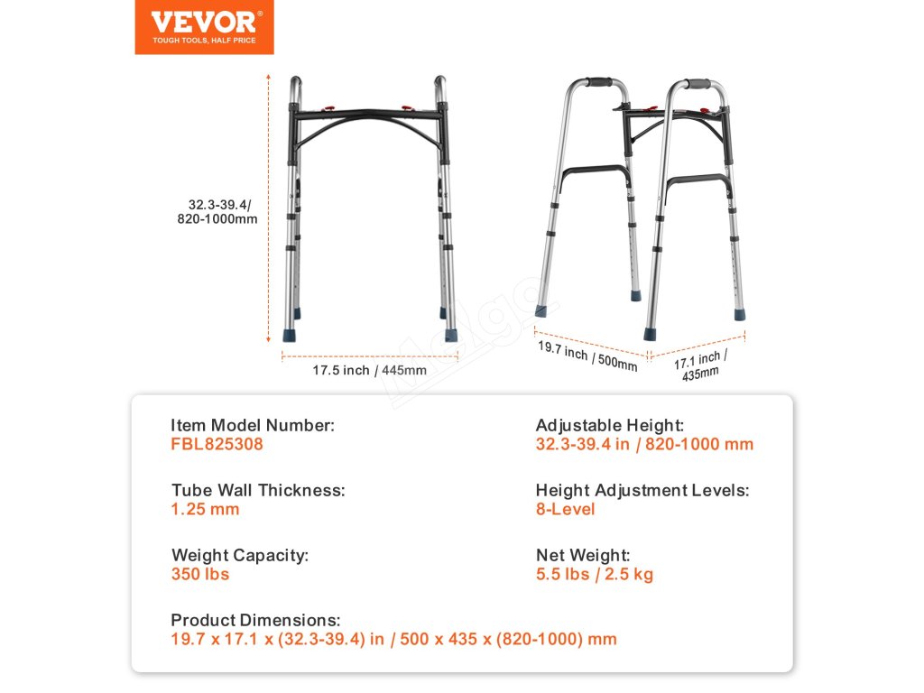 Skladacie chodítko VEVOR - váš dokonalý spoločník na zvýšenie mobility a nezávislosti. Vďaka skladaniu bez námahy a nastaviteľnej výške je navrhnuté na jednoduché skladovanie a individuálne používanie. Vďaka podpore až do 350 kilogramov poskytuje spoľahlivú stabilitu pre seniorov a osoby so zdravotným postihnutím.