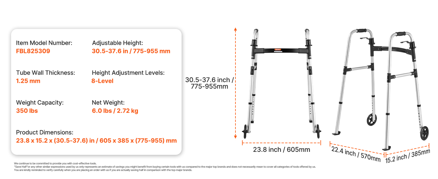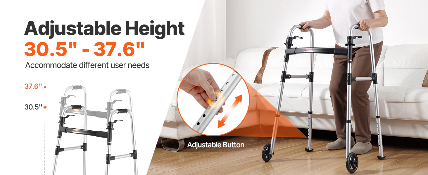 Skladacie chodítko VEVOR - váš nevyhnutný spoločník na zvýšenie mobility a nezávislosti. Vďaka skladaniu bez námahy a nastaviteľnej výške je navrhnuté na jednoduché skladovanie a individuálne používanie. Vďaka podpore až do 350 kilogramov poskytuje spoľahlivú stabilitu pre seniorov a osoby so zdravotným postihnutím.