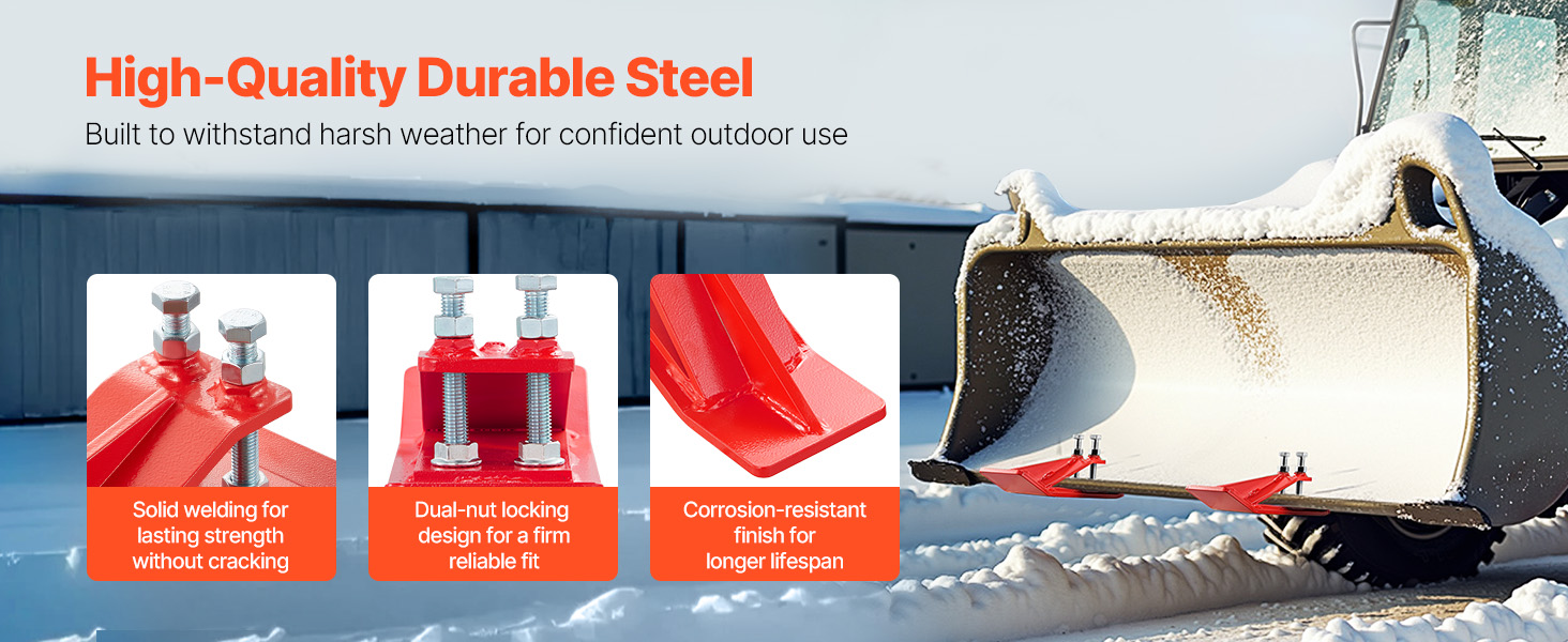 Tento chránič okraja lyžice traktora je vyrobený z kvalitnej ocele s pevným zváraním a odolá aj nepriaznivému počasiu. Zámok s dvojitou maticou pevne prilieha k okraju lyžice, čím zabraňuje odpojeniu. Povrchová úprava odolná proti korózii predlžuje jeho životnosť pri prácach vonku.