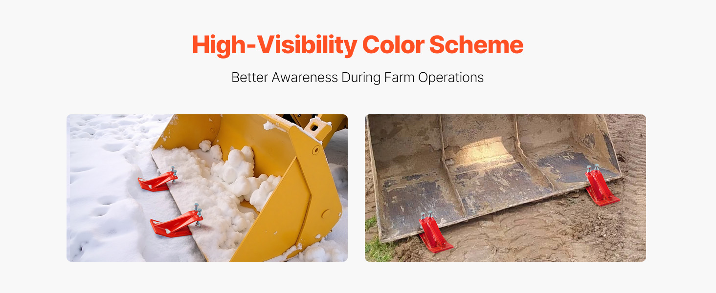 Jasné výstražné farby na tomto krotiteľovi okrajov lyžice uľahčujú jeho viditeľnosť počas poľnohospodárskych prác, pomáhajú znižovať počet nehôd a poskytujú lepšiu bezpečnosť pre vás aj ostatných.