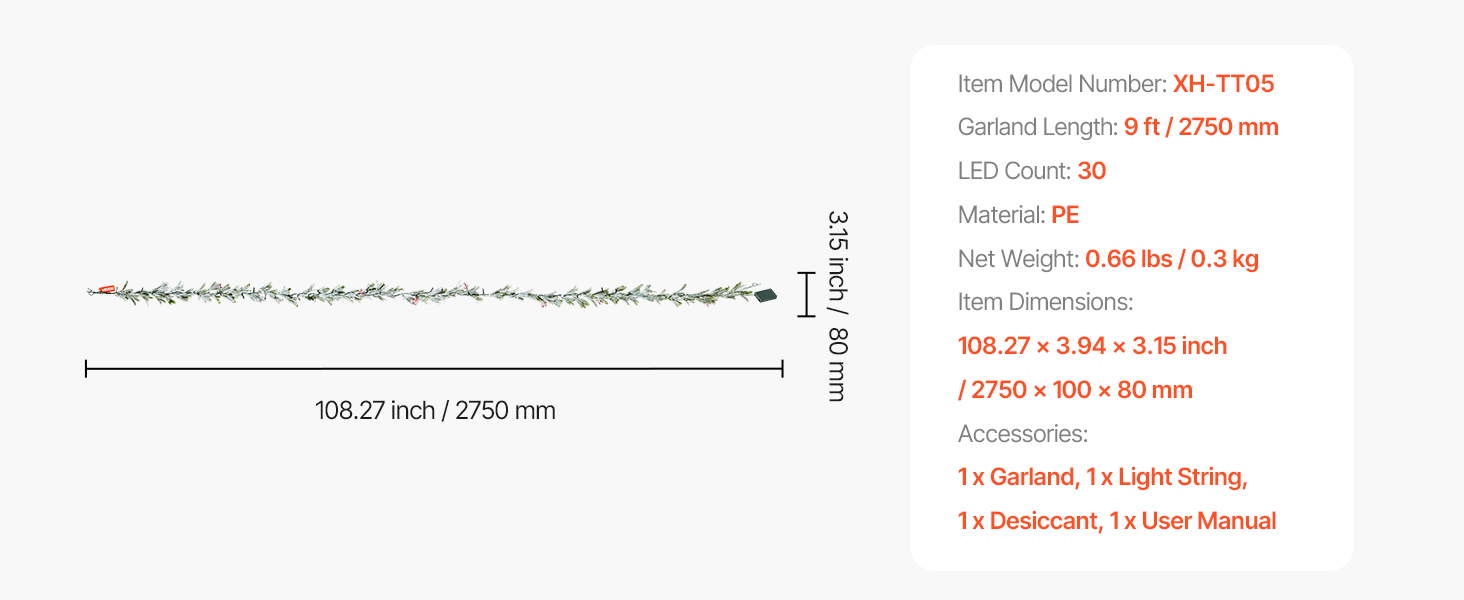 | Dĺžka girlandy | 9 stôp / 2750 mm |