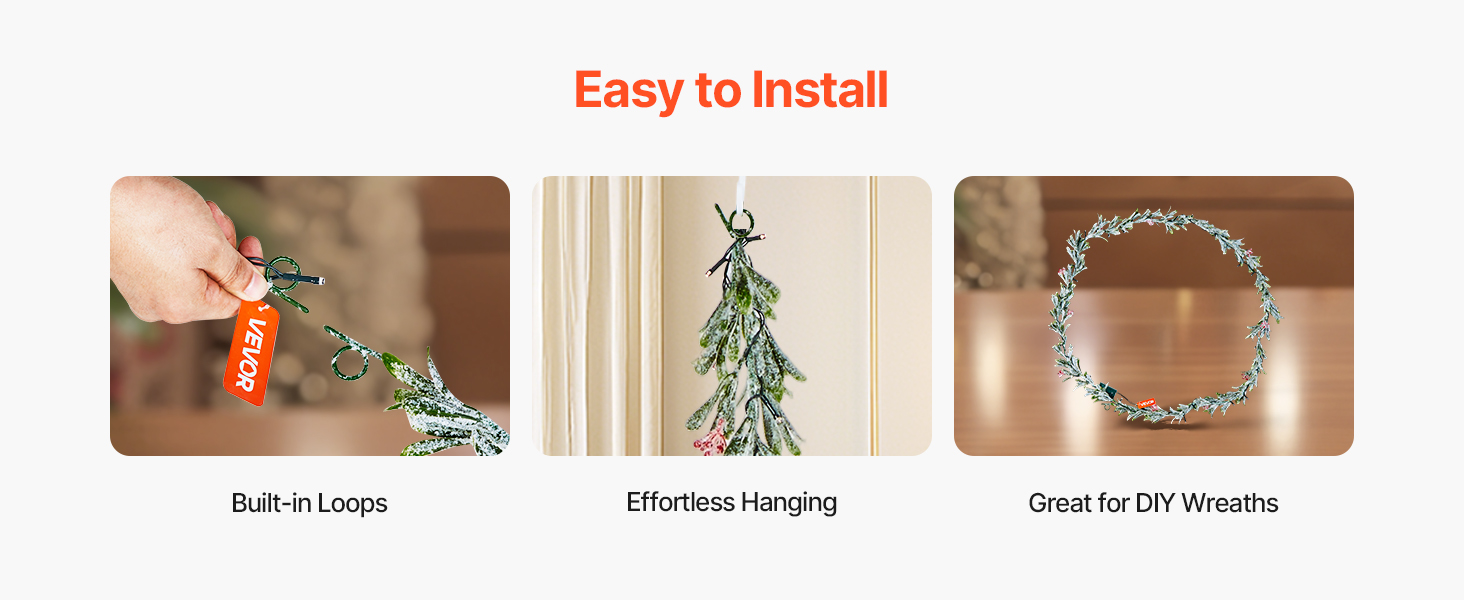 Vďaka zabudovaným pútkam na zavesenie sa tento vianočný zelený veniec ľahko inštaluje - nie sú potrebné žiadne nástroje. Robustná konštrukcia umožňuje rýchle zdobenie na stromčekoch, zábradliach, oknách alebo krboch, čím šetrí váš čas počas rušnej sezóny.