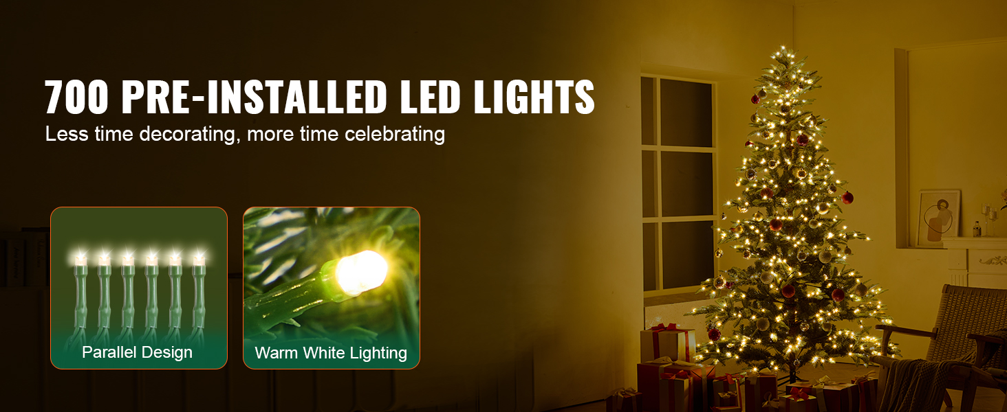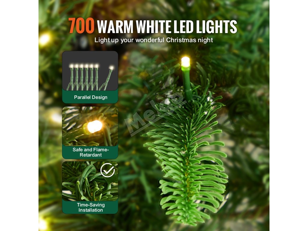 Potešte sa pohodlím 700 teplých bielych LED svetielok vopred navlečených na stromčeku, ktoré vám ušetria drahocenný čas počas zdobenia. Je navrhnutý s paralelným osvetlením, takže aj keď jedna žiarovka zhasne, ostatné zostanú svietiť a vytvoria čarovnú sviatočnú atmosféru.