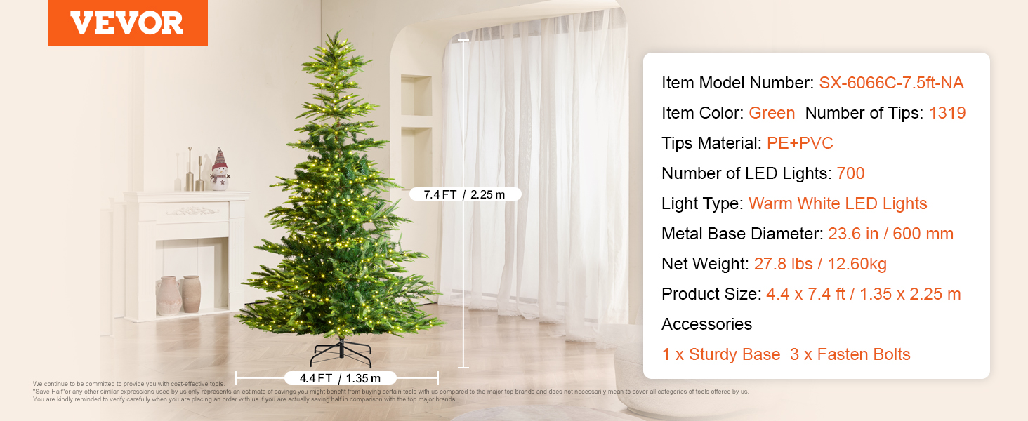 Nechajte predsvietené vianočné stromčeky VEVOR, aby sa stali stredobodom vašich sviatočných osláv a naplnili domov teplom, radosťou a duchom sezóny. 1319 koncov vetvičiek sa postará o svieži a realistický vzhľad a 700 teplých bielych LED svetielok vytvorí očarujúcu atmosféru, ktorú si budete vy a vaši blízki vážiť.
