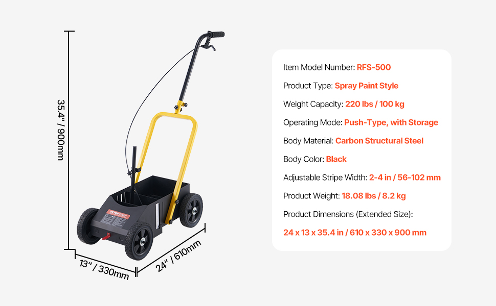 Stroj na značenie čiar 4-kolesový 24×13×35.4 in, nastaviteľná šírka