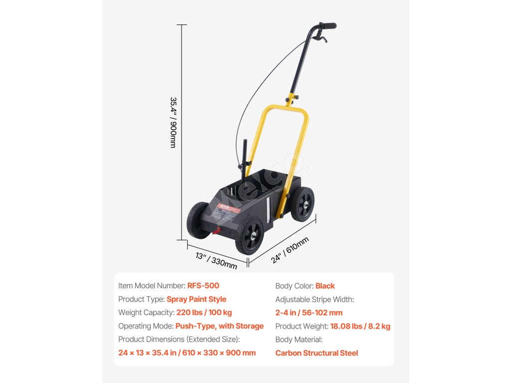 Stroj na značenie čiar 4-kolesový 24×13×35.4 in, nastaviteľná šírka
