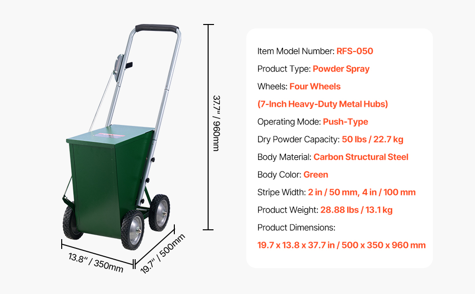 Tento suchý popisovač pojme až 50 libier suchého prášku, takže je ideálny pre rôzne projektové potreby. Zaručuje jasné a presné čiary, ľahko sa ovláda a poskytuje vynikajúci používateľský zážitok. Najlepšia voľba pre stroje na značenie športových ihrísk.