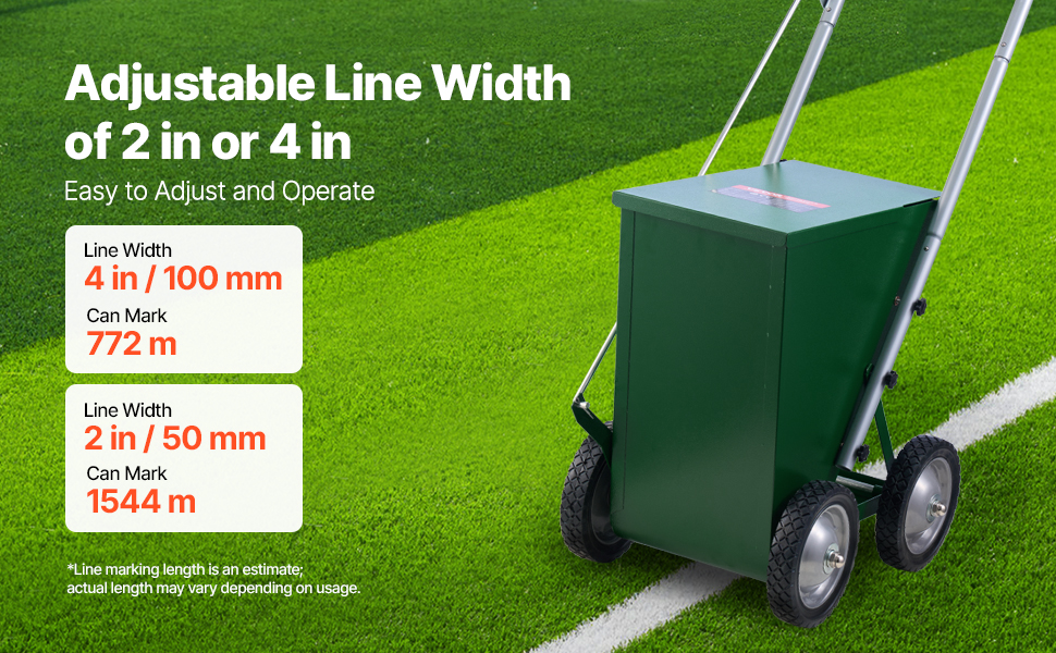 Vďaka nastaviteľnej rukoväti umožňuje táto terénna značka bez námahy nastaviť šírku čiary na 2 palce alebo 4 palce, čo poskytuje flexibilitu na splnenie špecifických potrieb rôznych povrchov a projektov.