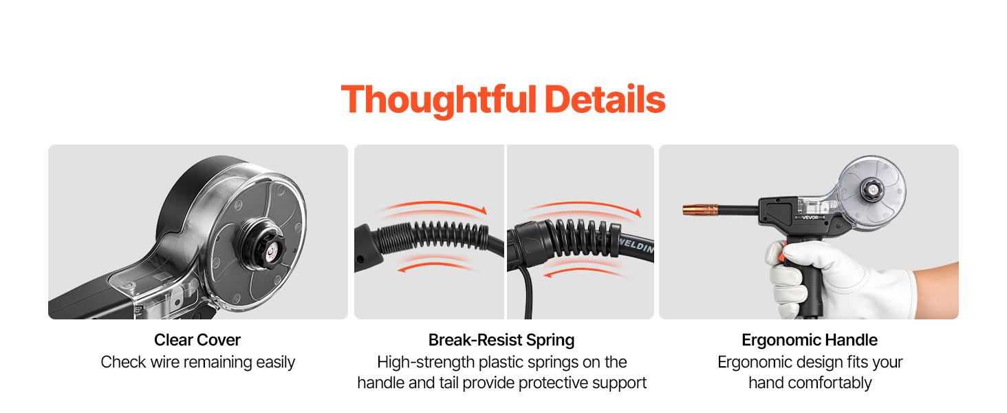 Vizuálne sledovanie drôtu v kombinácii s pohodlným úchopom zvyšuje efektivitu pracovného toku a zaisťuje plynulejšie zváranie.
